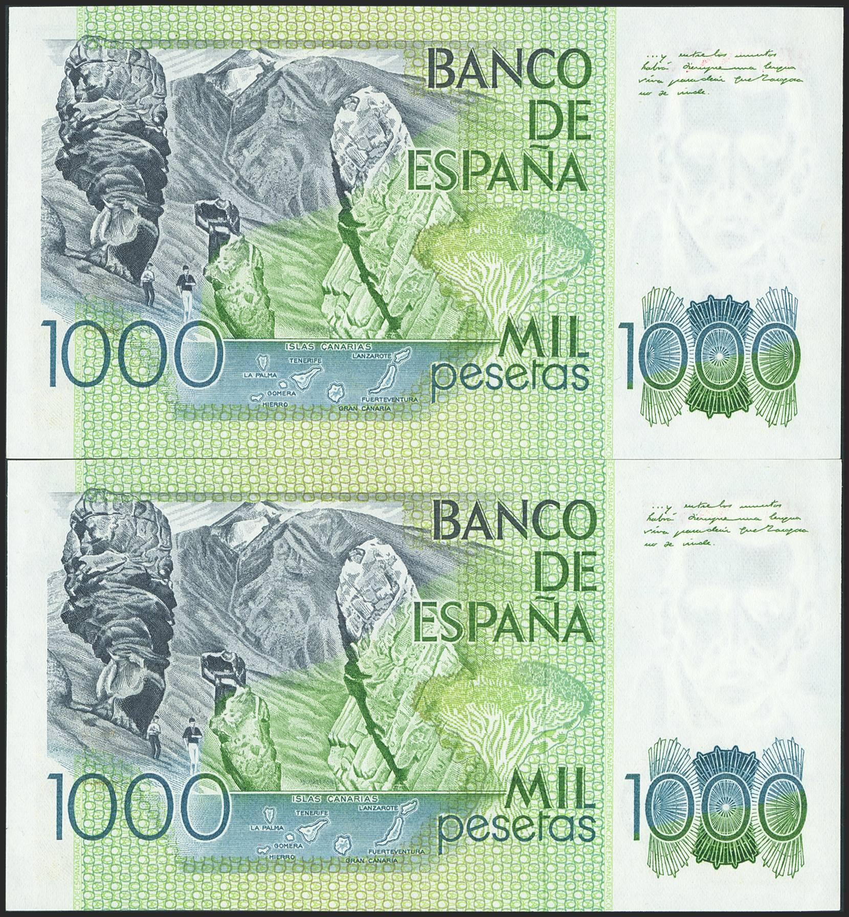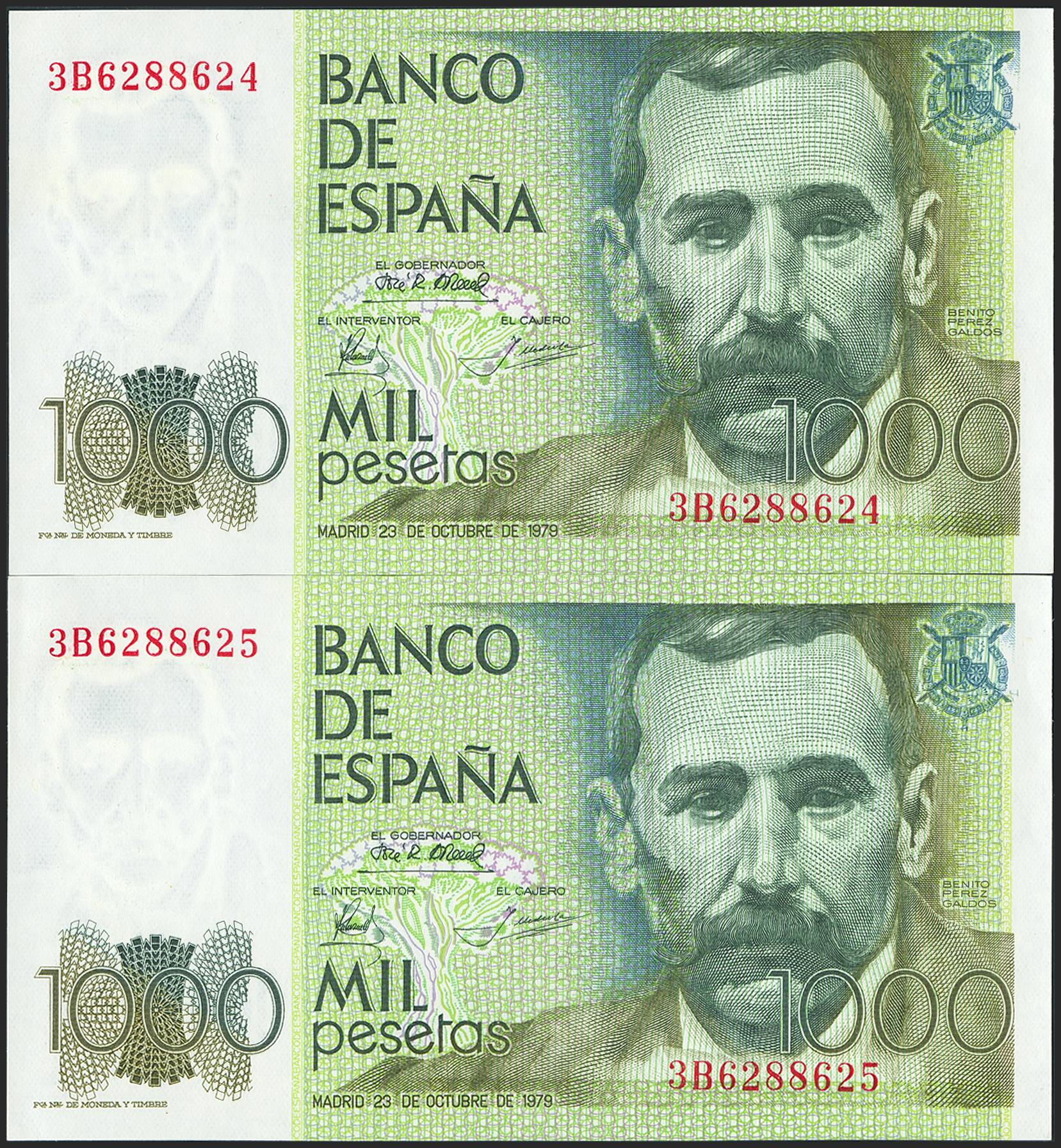 1000 Pesetas. 23 de Octubre de 1979. Pareja correlativa. Serie 3B. (Edifil 2023: 477a). SC.