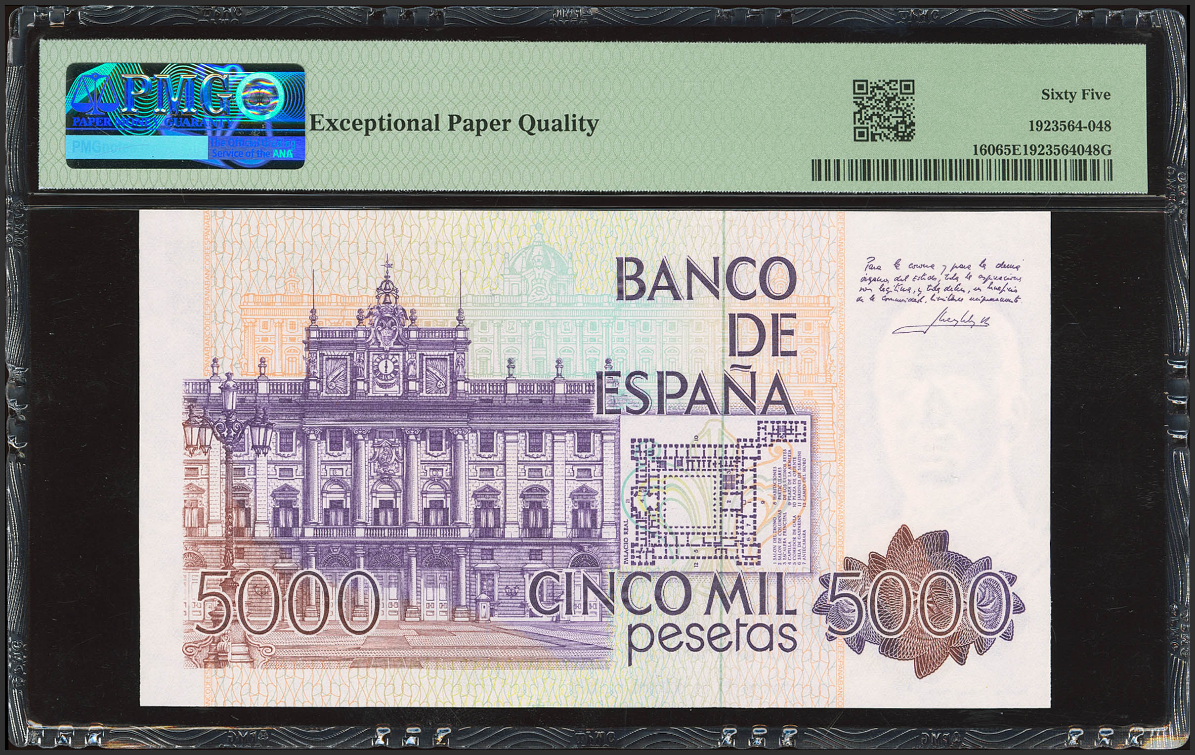 5000 Pesetas. 23 de Octubre de 1979. Sin serie. (Edifil 2023: 478, Pick: 160). SC. Encapsulado PMG65EPQ.
