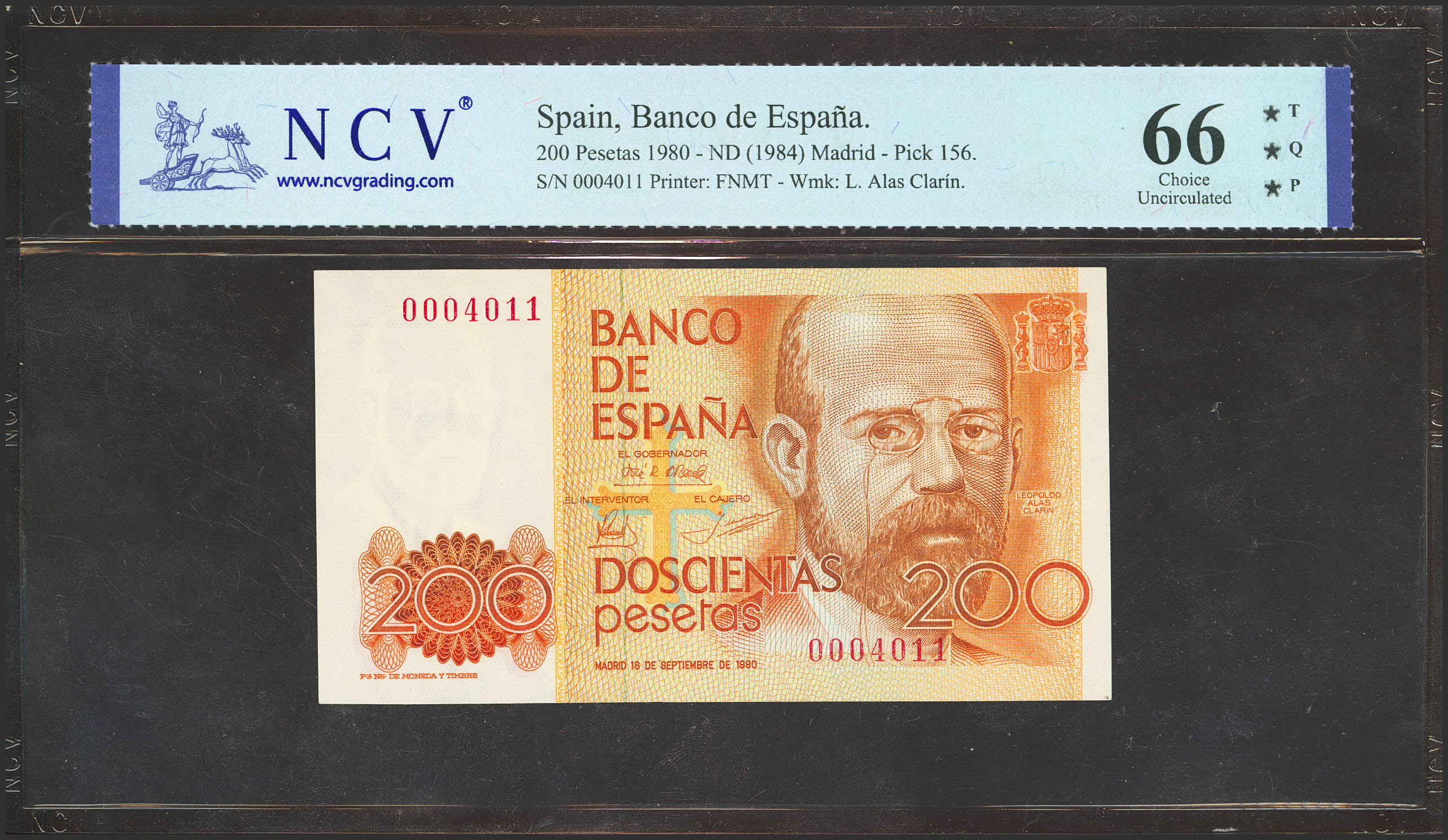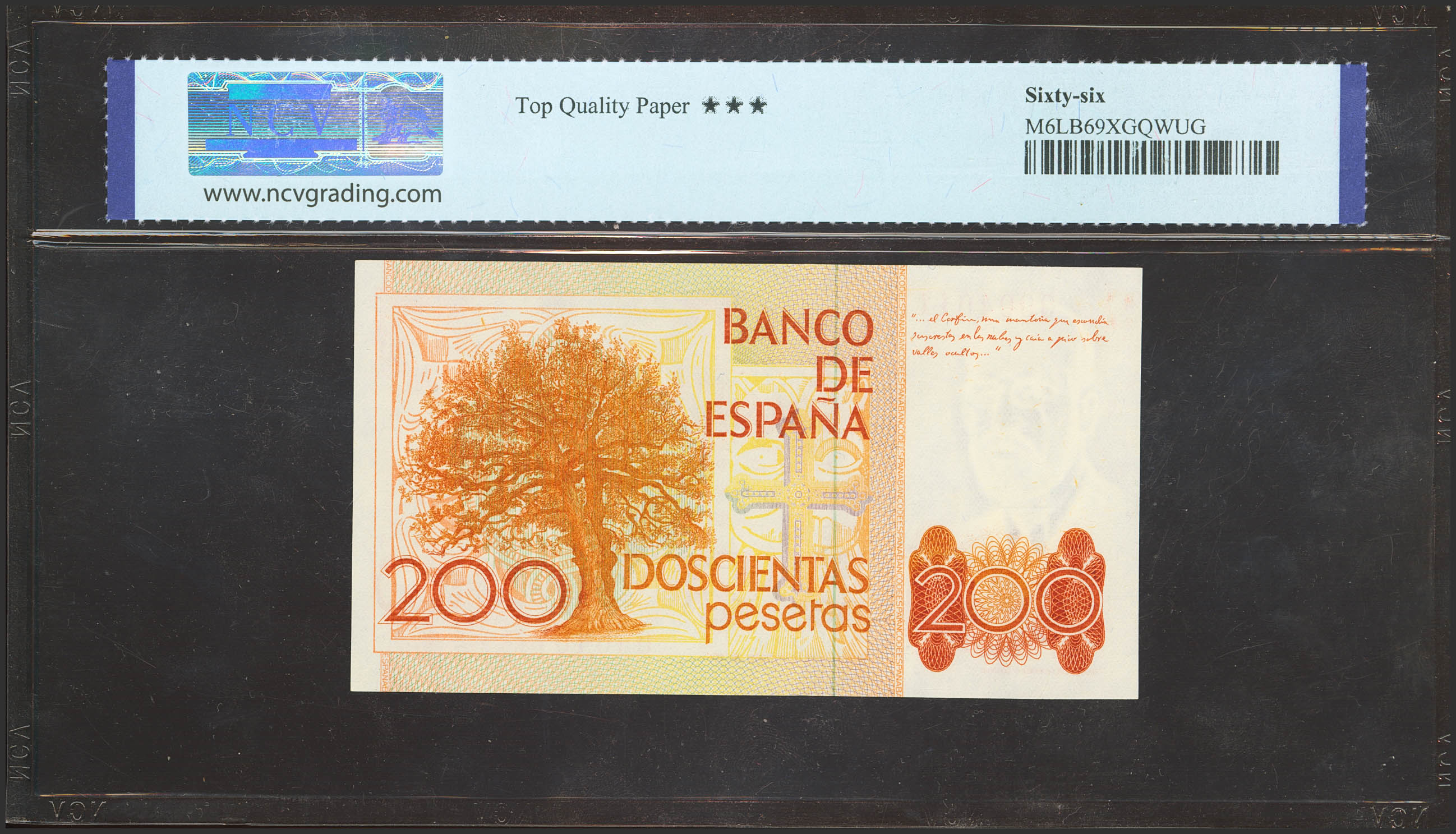 200 Pesetas. 16 de Septiembre de 1980. Sin serie. (Edifil 2023: 480, Pick: 156). SC. Encapsulado NCV66TQP.