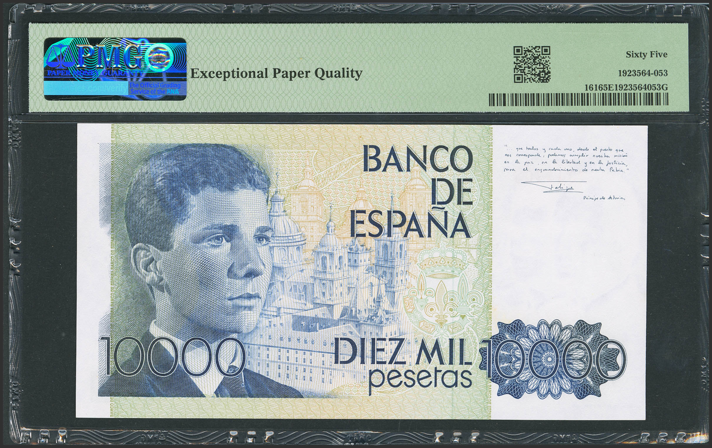 10000 Pesetas. 24 de Septiembre de 1985. Sin serie. (Edifil 2023: 481, Pick: 161). SC. Encapsulado PMG65EPQ.