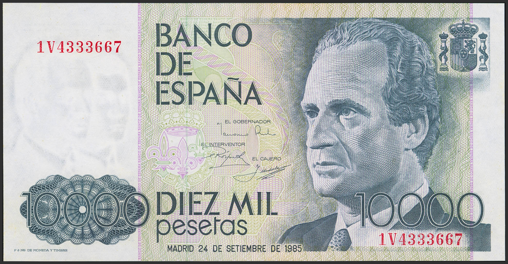 10000 Pesetas. 24 de Septiembre de 1985. Serie 1V. (Edifil 2023: 481a). SC.