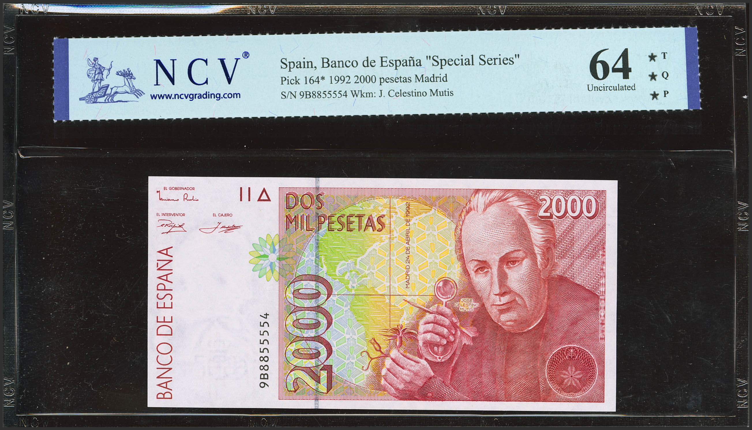 2000 Pesetas. 24 de Abril de 1992. Serie especial 9B. (Edifil 2023: 482Ab, Pick: 164*). SC. Encapsulado NCV64TPQ.