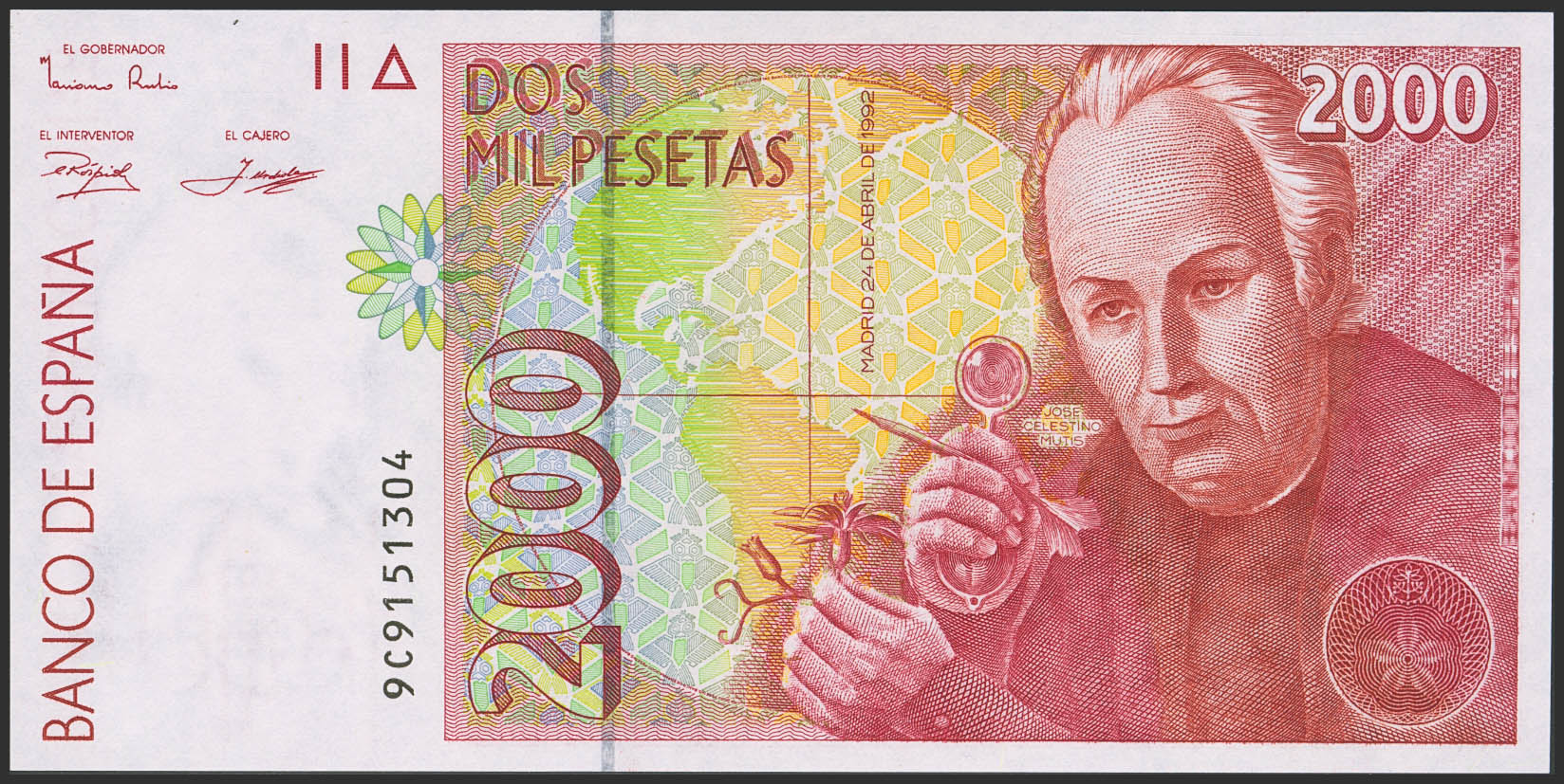 2000 Pesetas. 24 de Abril de 1992. Serie especial 9C. (Edifil 2023: 482Ad). SC.