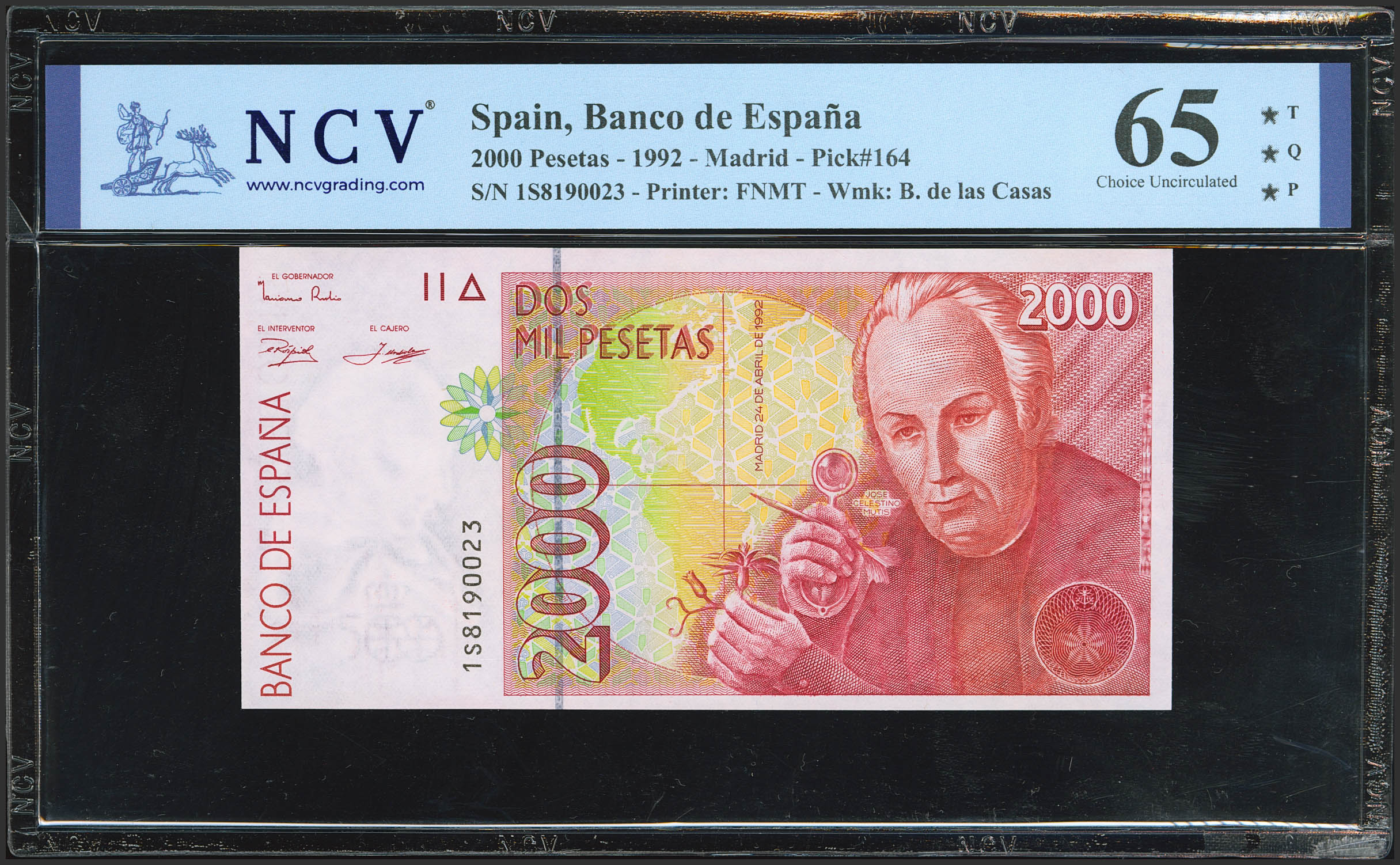 2000 Pesetas. 24 de Abril de 1992. Serie 1S. (Edifil 2023: 482A, Pick: 164). SC. Encapsulado NCV65TQP.
