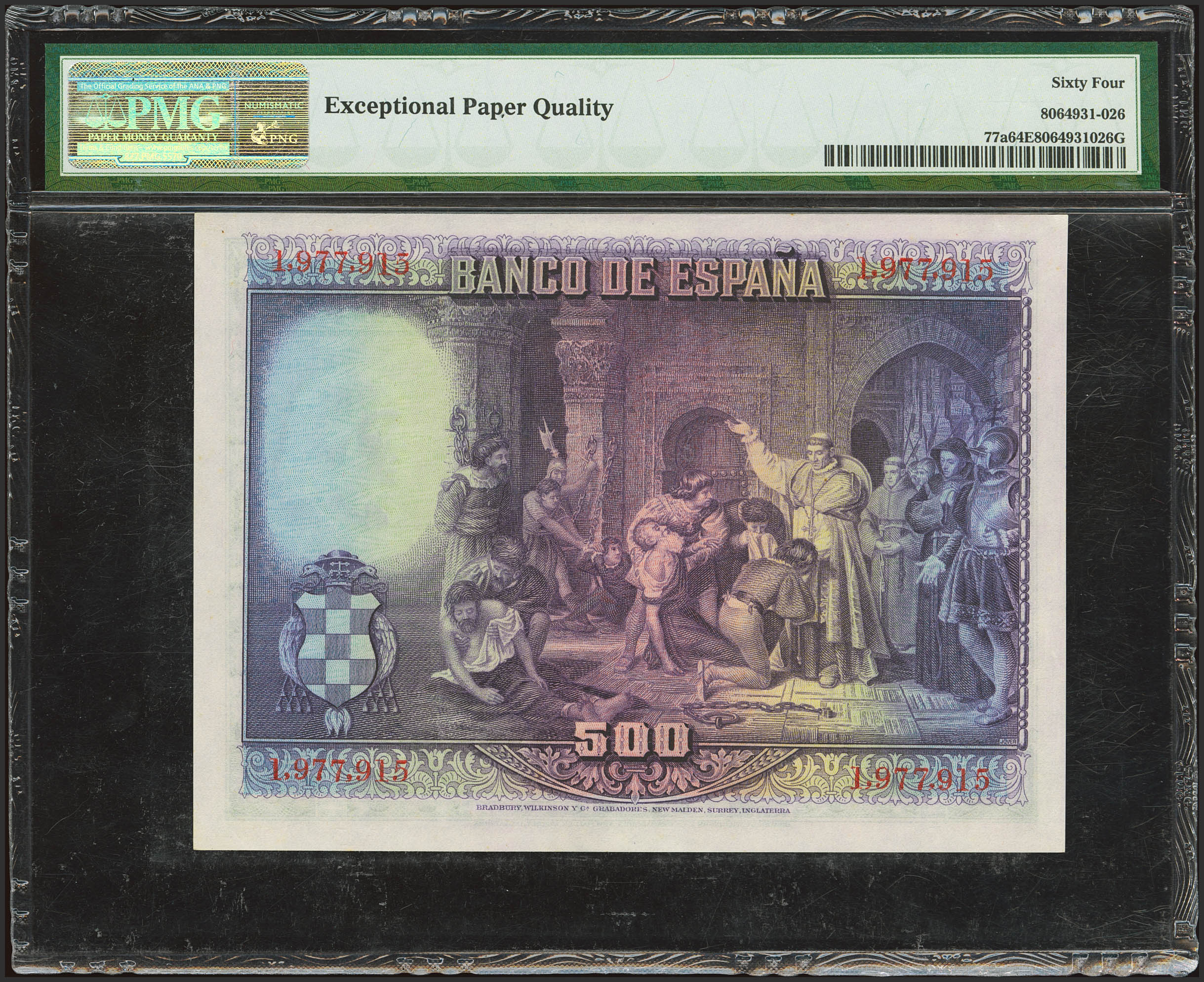 500 Pesetas. 15 de Agosto de 1928. Sin serie. (Edifil 2023: 356, Pick: 77a). Apresto original. SC. Encapsulado PMG64EPQ.