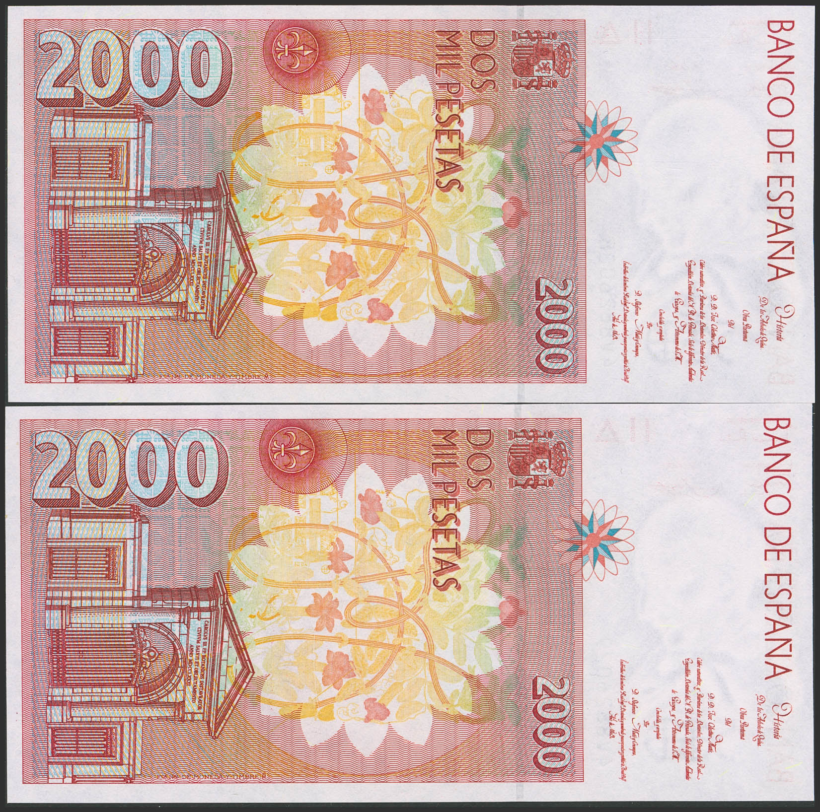 2000 Pesetas. 24 de Abril de 1992. Pareja correlativa. Serie 4V. (Edifil 2023: 482Aa). SC.