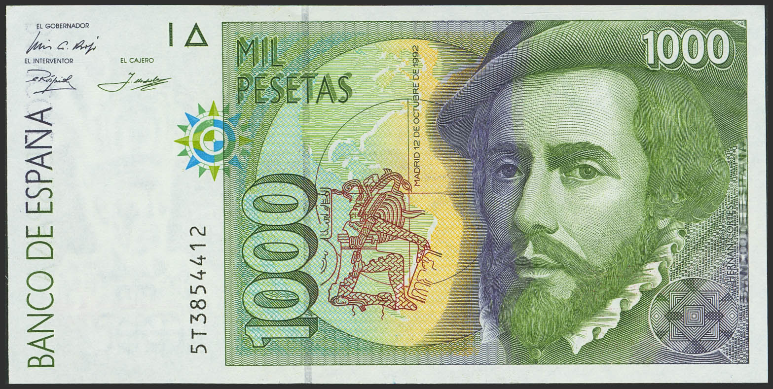 1000 Pesetas. 12 de Octubre de 1992. Serie 5T. (Edifil 2023: 483b). SC.