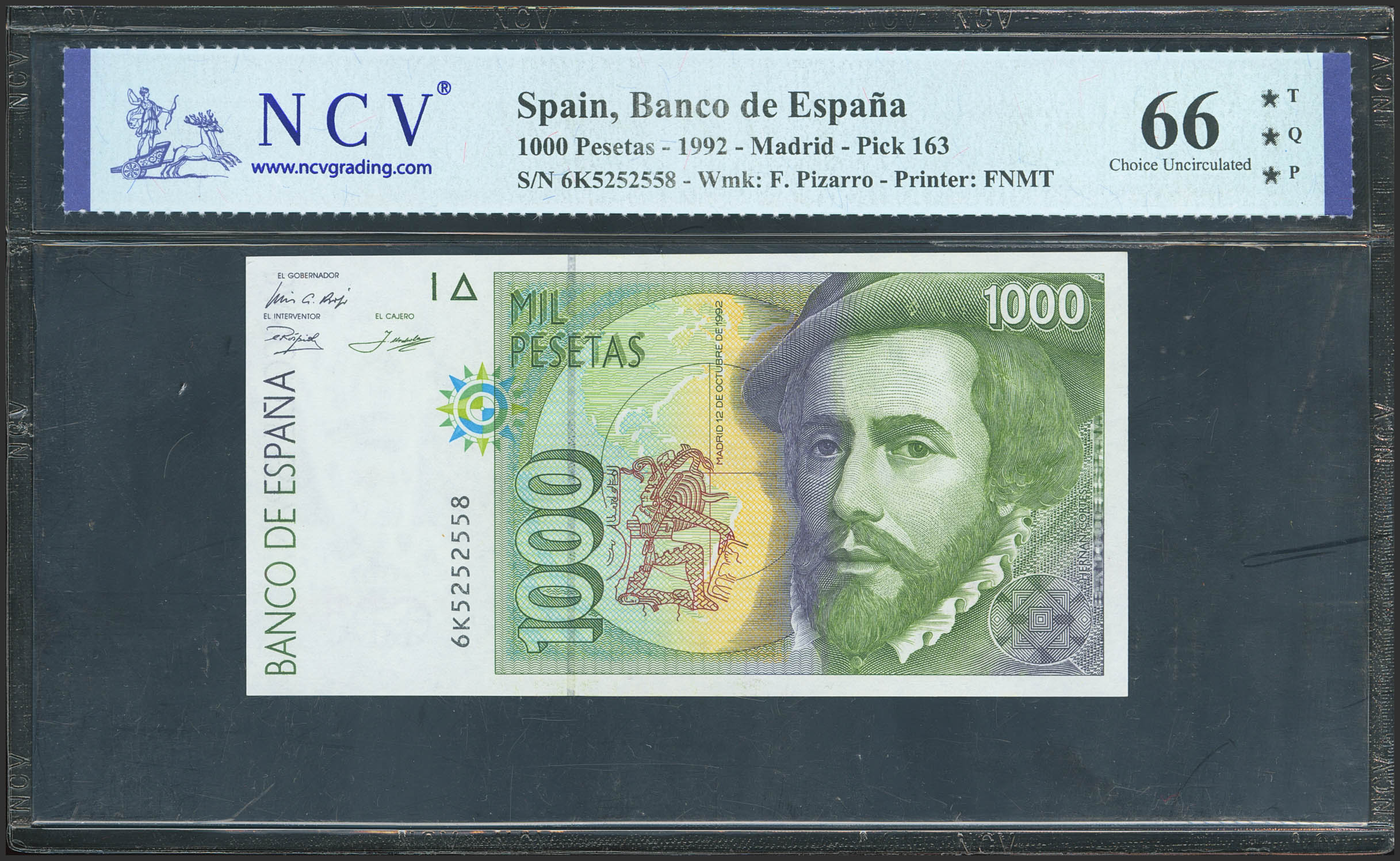 1000 Pesetas. 12 de Octubre de 1992. Serie 6K. (Edifil 2023: 483b, Pick: 163). SC. Encapsulado NCV66TQP.