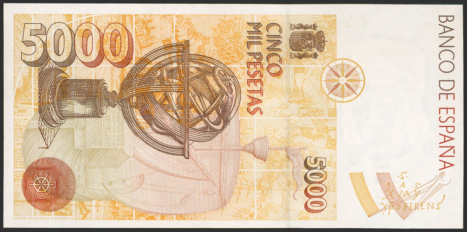 5000 Pesetas. 12 de Octubre de 1992. Serie especial 9A. (Edifil 2023: 484b). SC.
