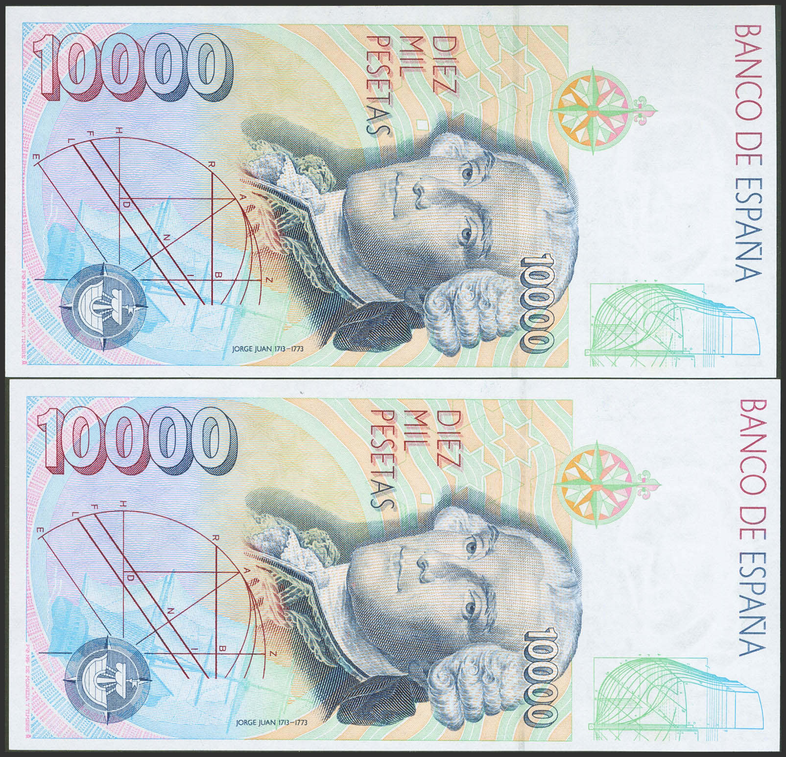 10000 Pesetas. 12 de Octubre de 1992. Pareja correlativa. Sin serie. (Edifil 2021: 485). SC.