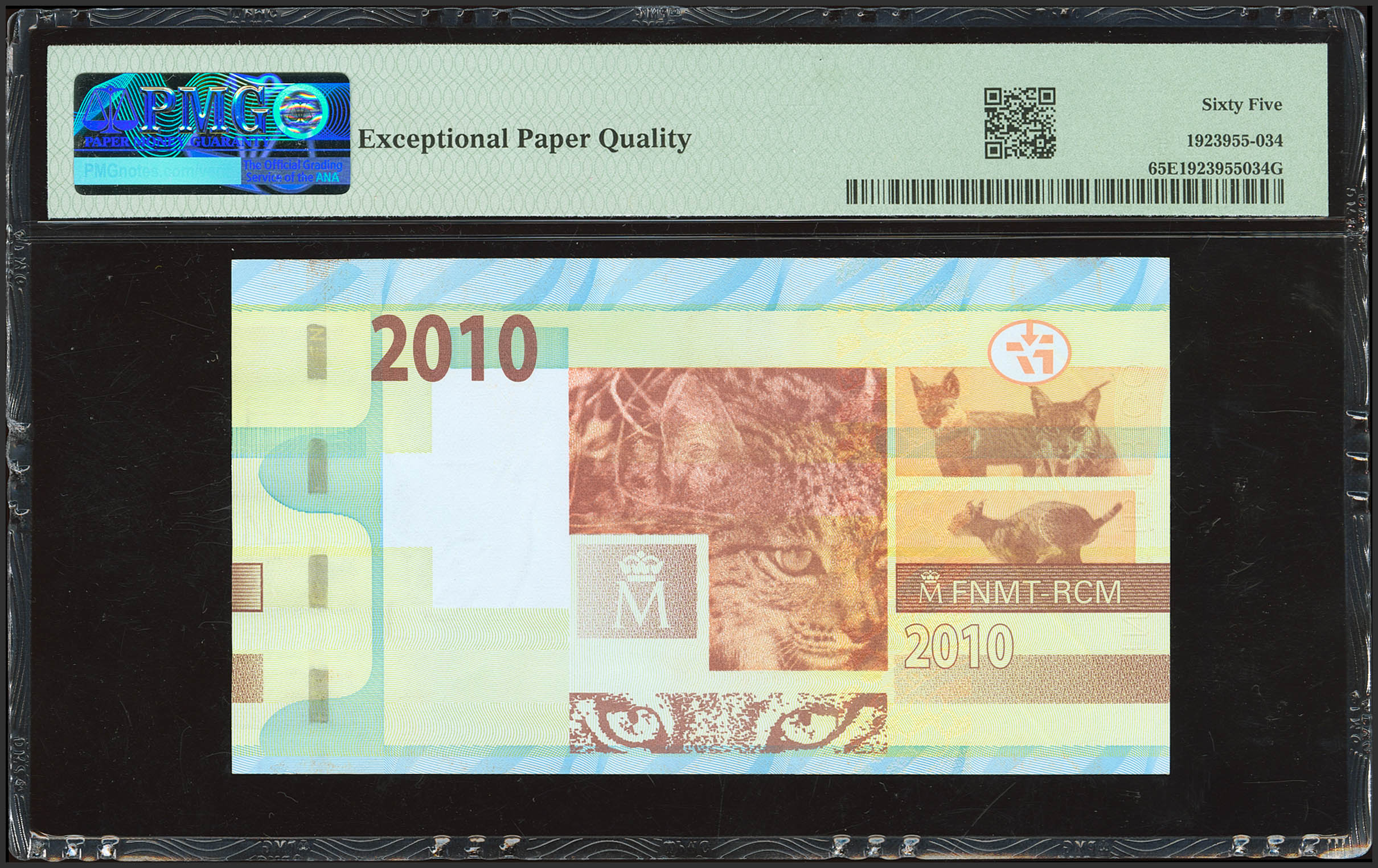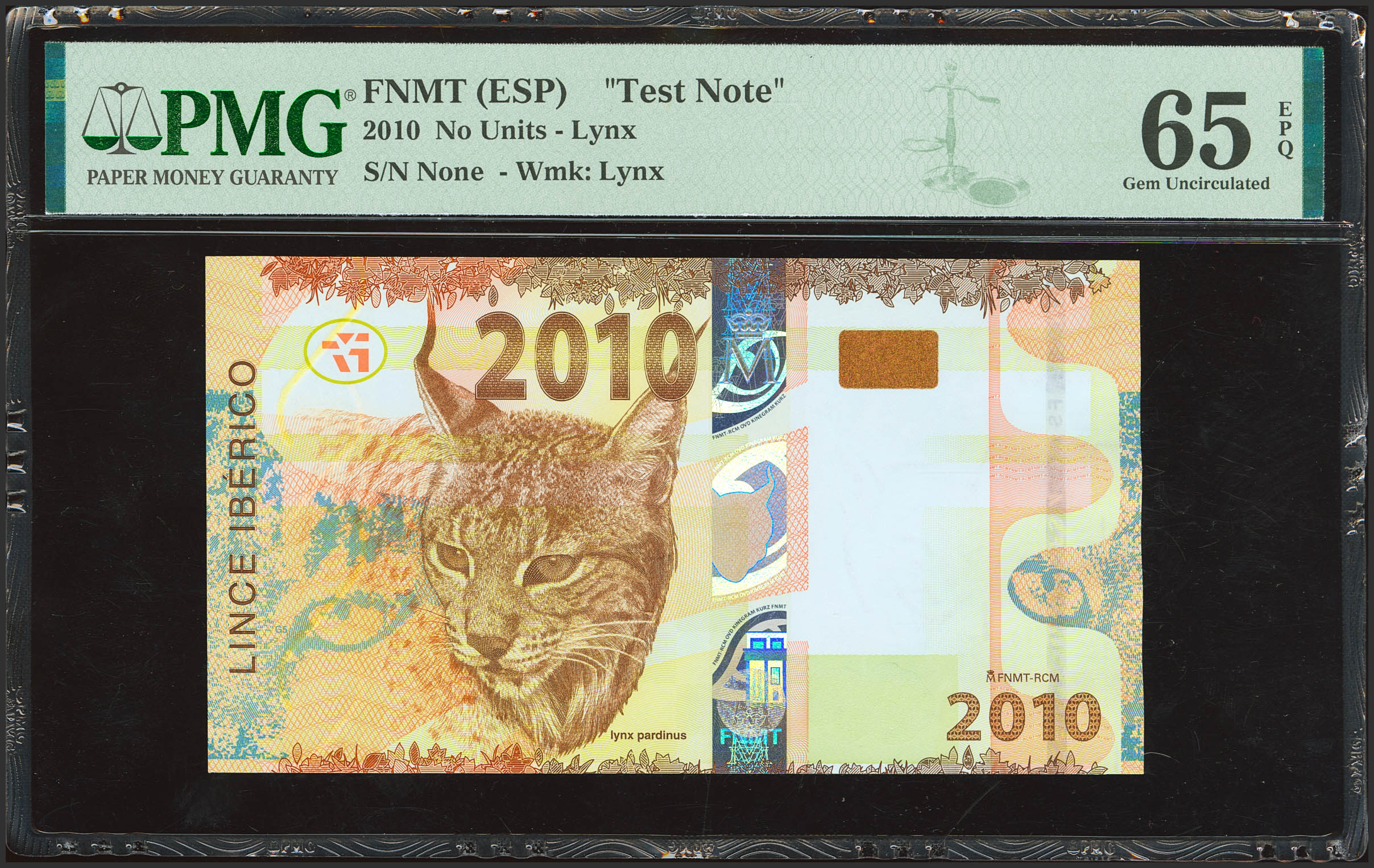 Prueba de billete de la FNMT, fabricado en el 2010. (Edifil 2023: 2). SC. Encapsulado PMG65EPQ.