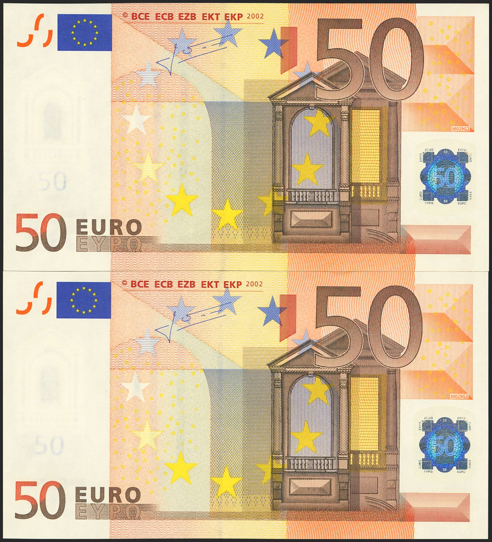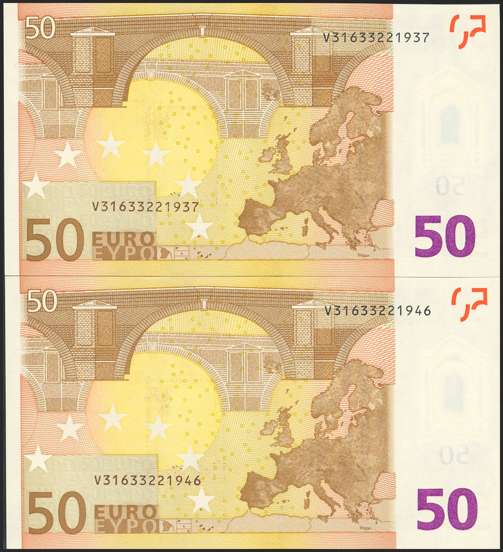 50 Euros. 2002. Firma Trichet. Pareja correlativa. Serie V (España). (Edifil 2023: 489A). SC/SC-.