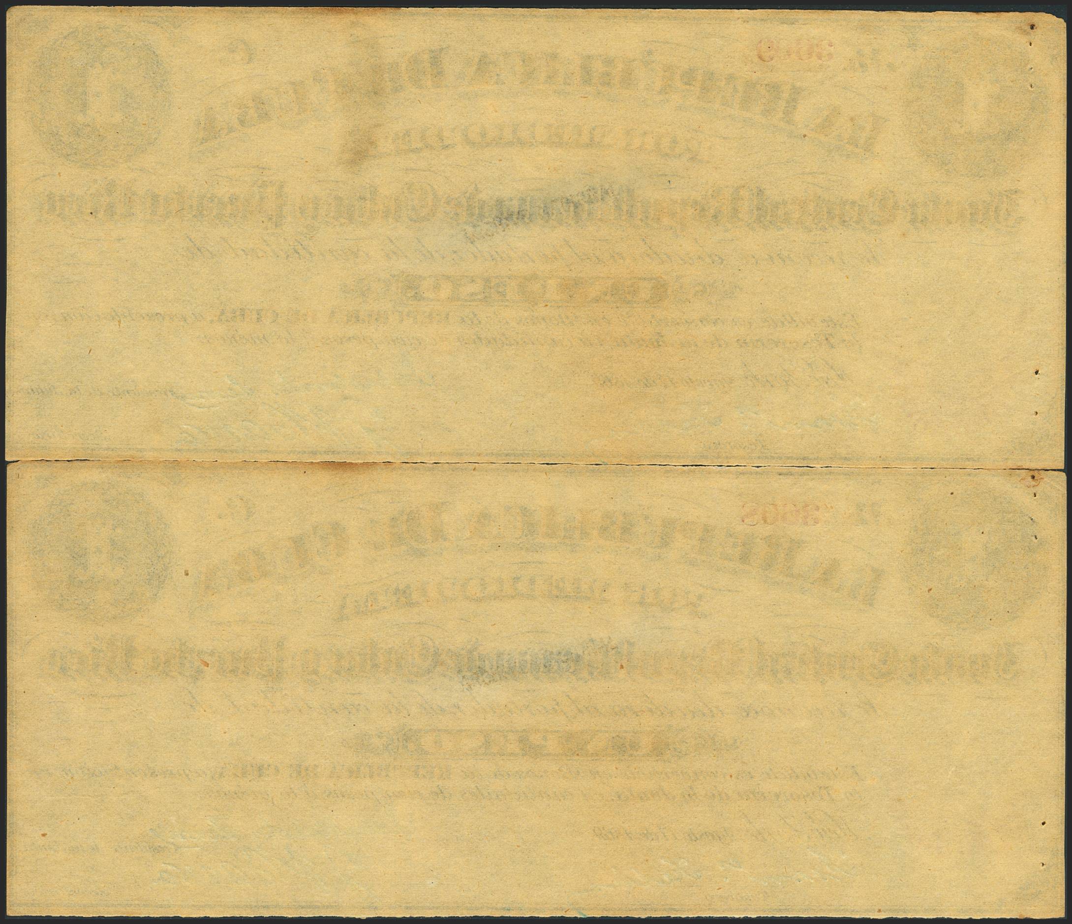 REPUBLICA DE CUBA. 1 Peso. 17 de Agosto de 1869. Pareja correlativa. Serie C. (Edifil 2023: 35, Pick: 62). Rarísima en esta excepcional calidad, puntitos de aguja. SC--.