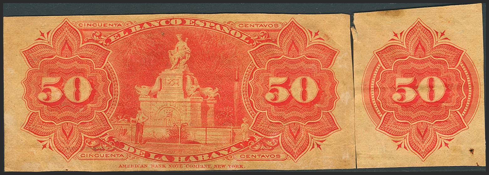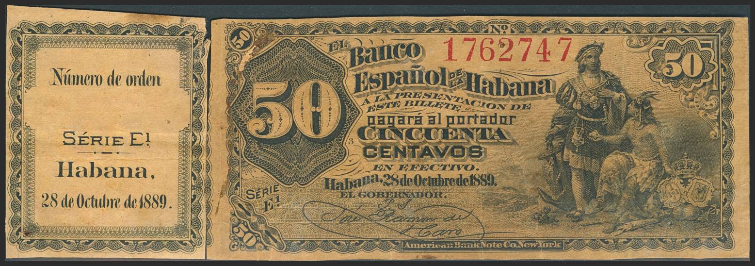 EL BANCO ESPAÑOL DE LA HABANA. 50 Centavos. 28 de Octubre de 1889. Serie E (se adjunta la matriz de otro billete). (Edifil 2023: 62). MBC-.