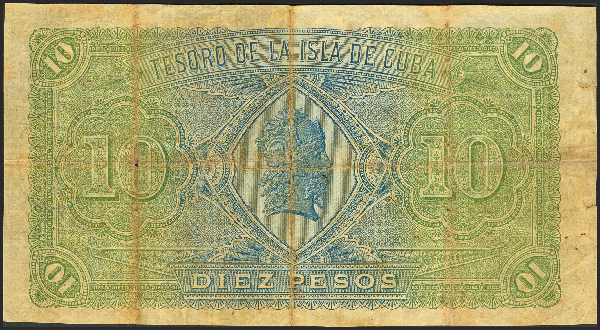 BANCO ESPAÑOL DE LA ISLA DE CUBA. 10 Pesos. 12 de Agosto de 1891. Sin serie y sin firmas como los ejemplares conocidos. (Edifil 2023: 64). Raro. BC-.