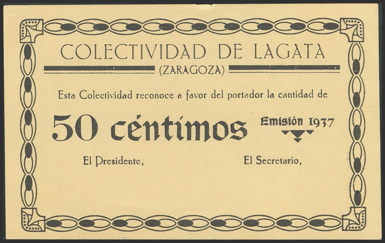 LAGATA (ZARAGOZA). 50 Céntimos. 1937. (González: 3089). Inusual, especialmente en esta calidad. SC--.