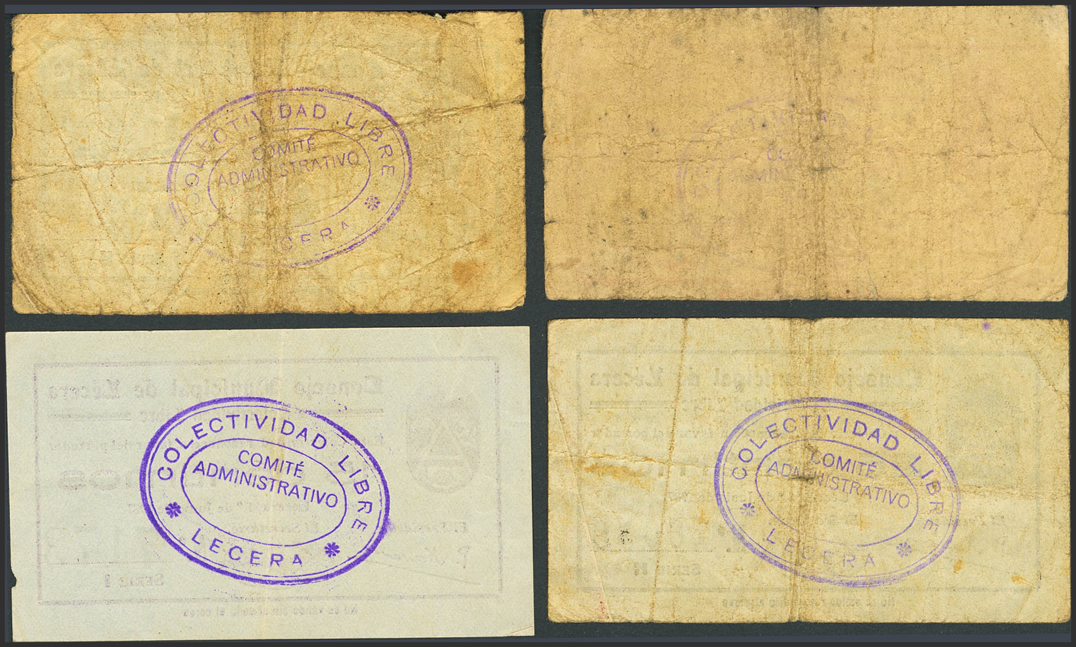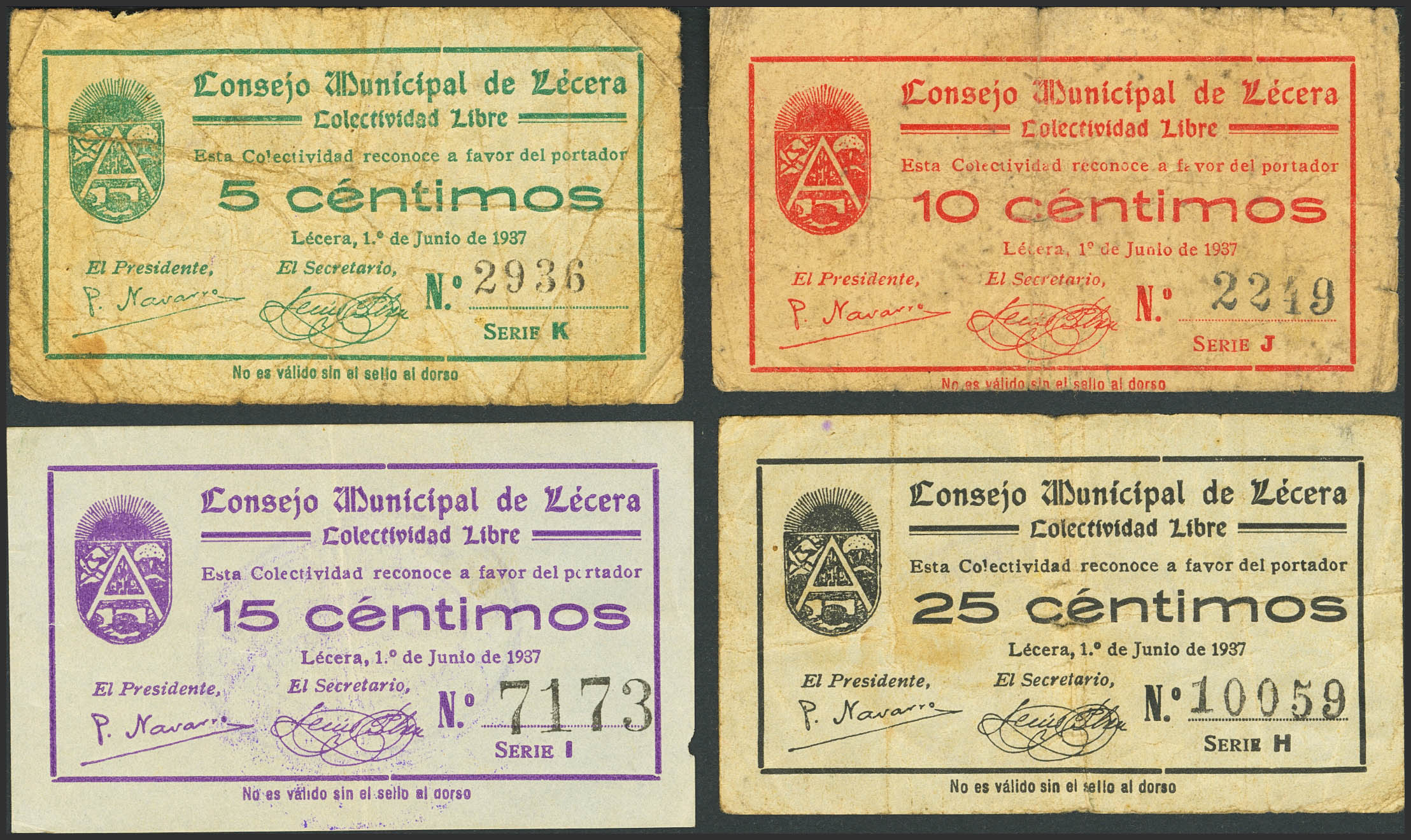 LECERA (ZARAGOZA). 5 Céntimos, 10 Céntimos, 15 Céntimos y 25 Céntimos. 1 de Junio de 1937. (González: 3120, 3121, 3122, 3123). Inusuales. BC/MBC.