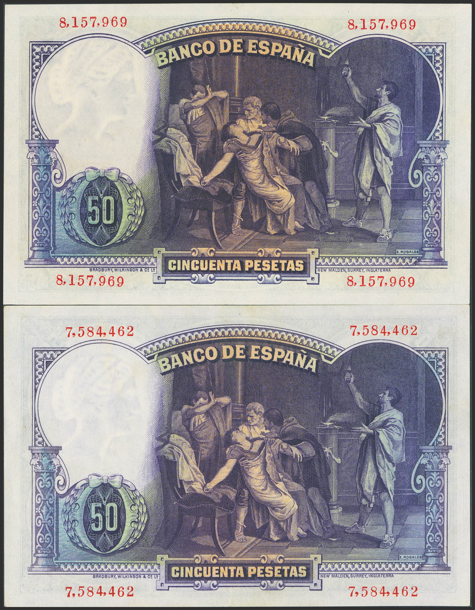 50 Pesetas. 25 de Abril de 1931. Sin serie (ambos). (Edifil 2023: 359). Conservan gran parte de su apresto original. EBC+++.