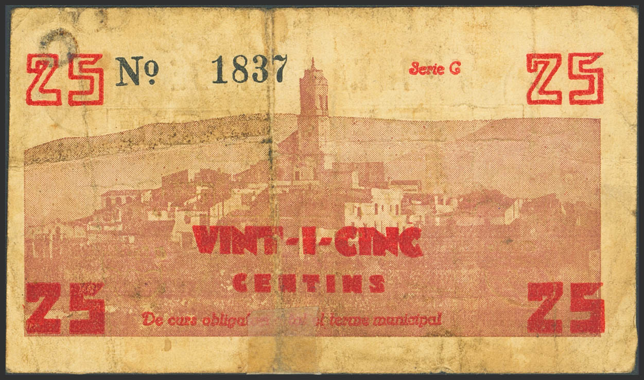 BORGUES DEL CAMP (TARRAGONA). 25 Céntimos. (1937ca). (González: 7163). Raro. BC-.