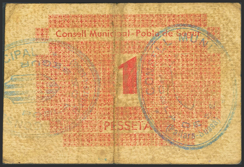 POBLA DE SEGUR (LERIDA). 1 Peseta. (1937ca). (González: 9338). Inusual. BC.