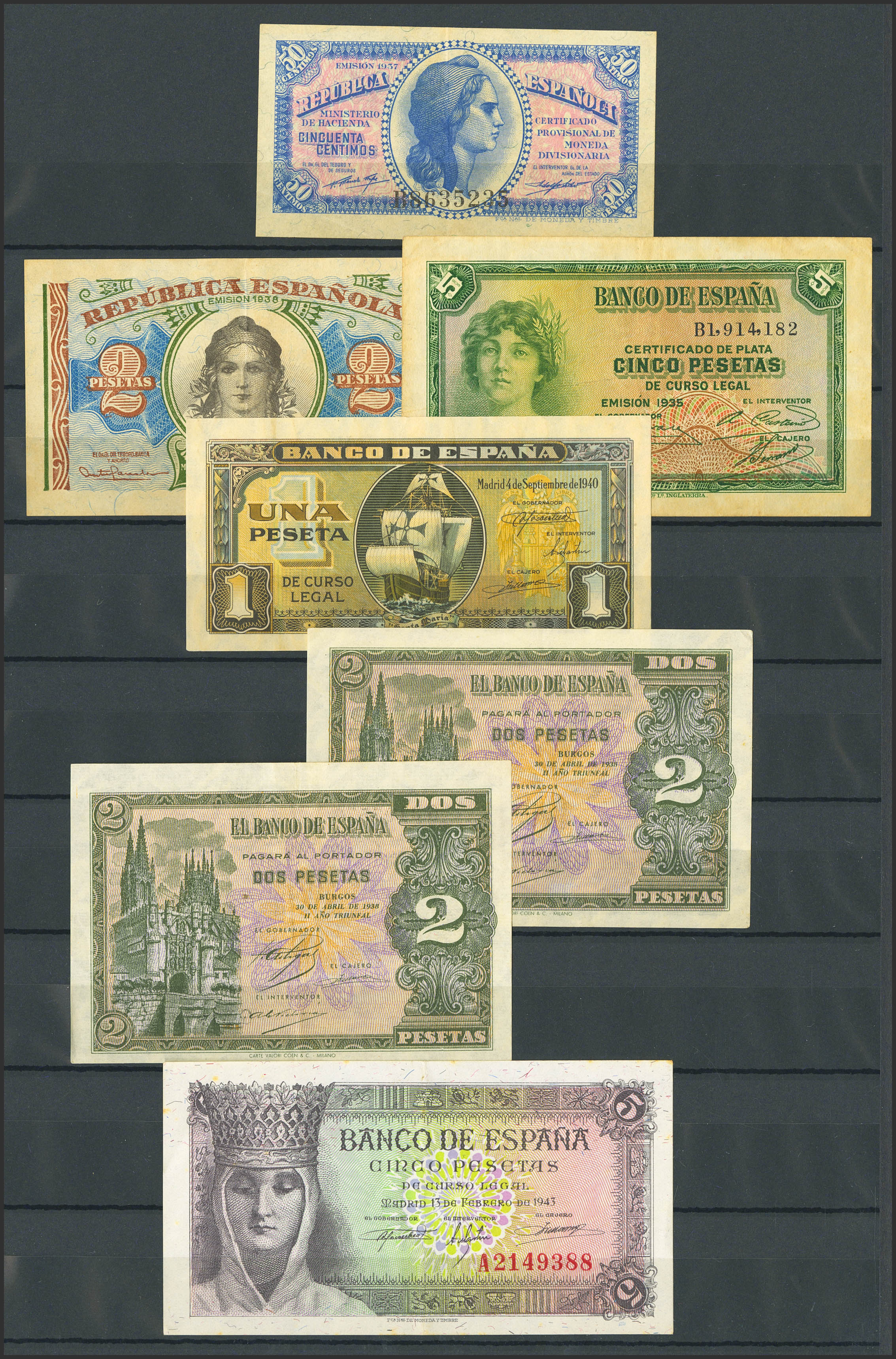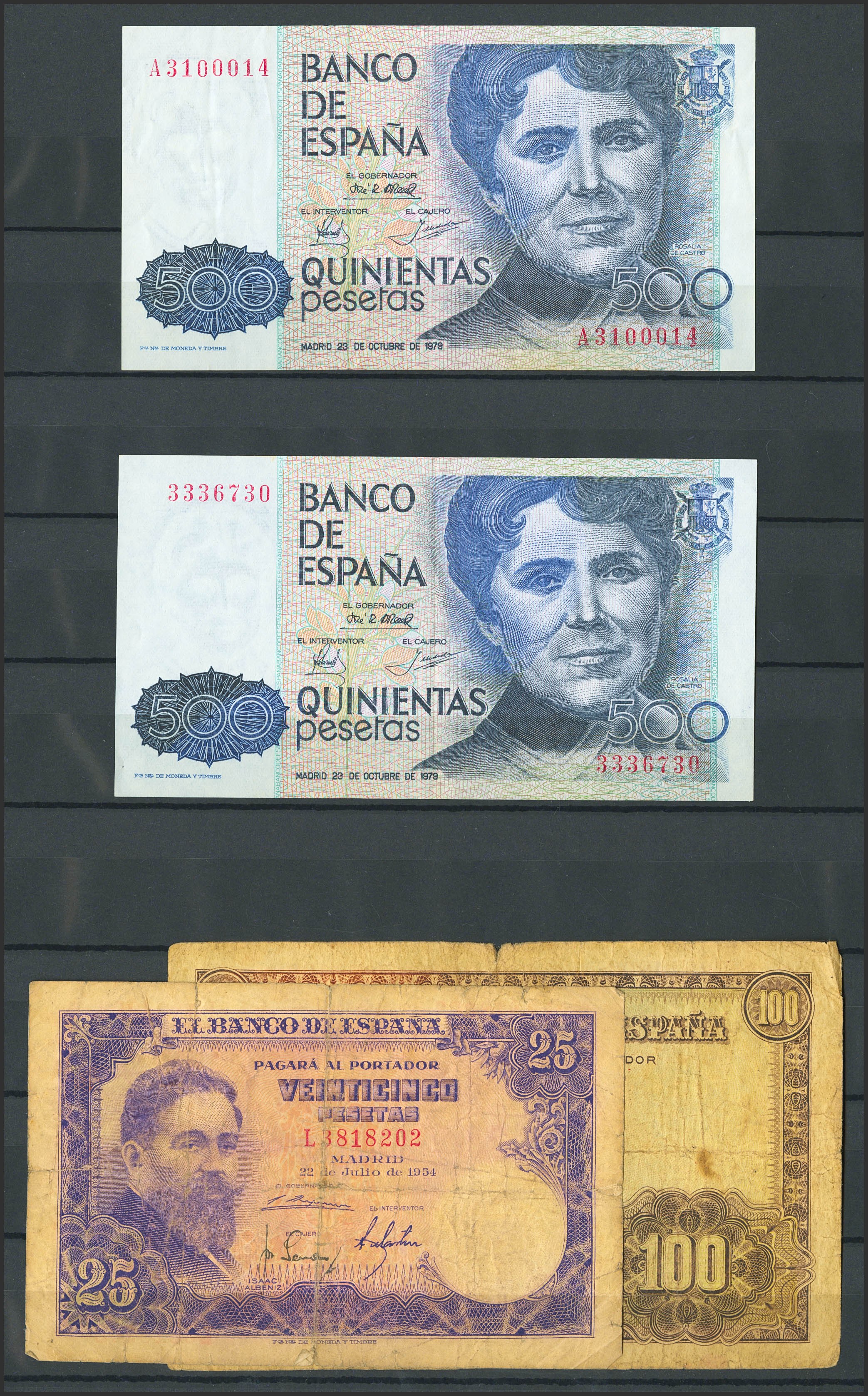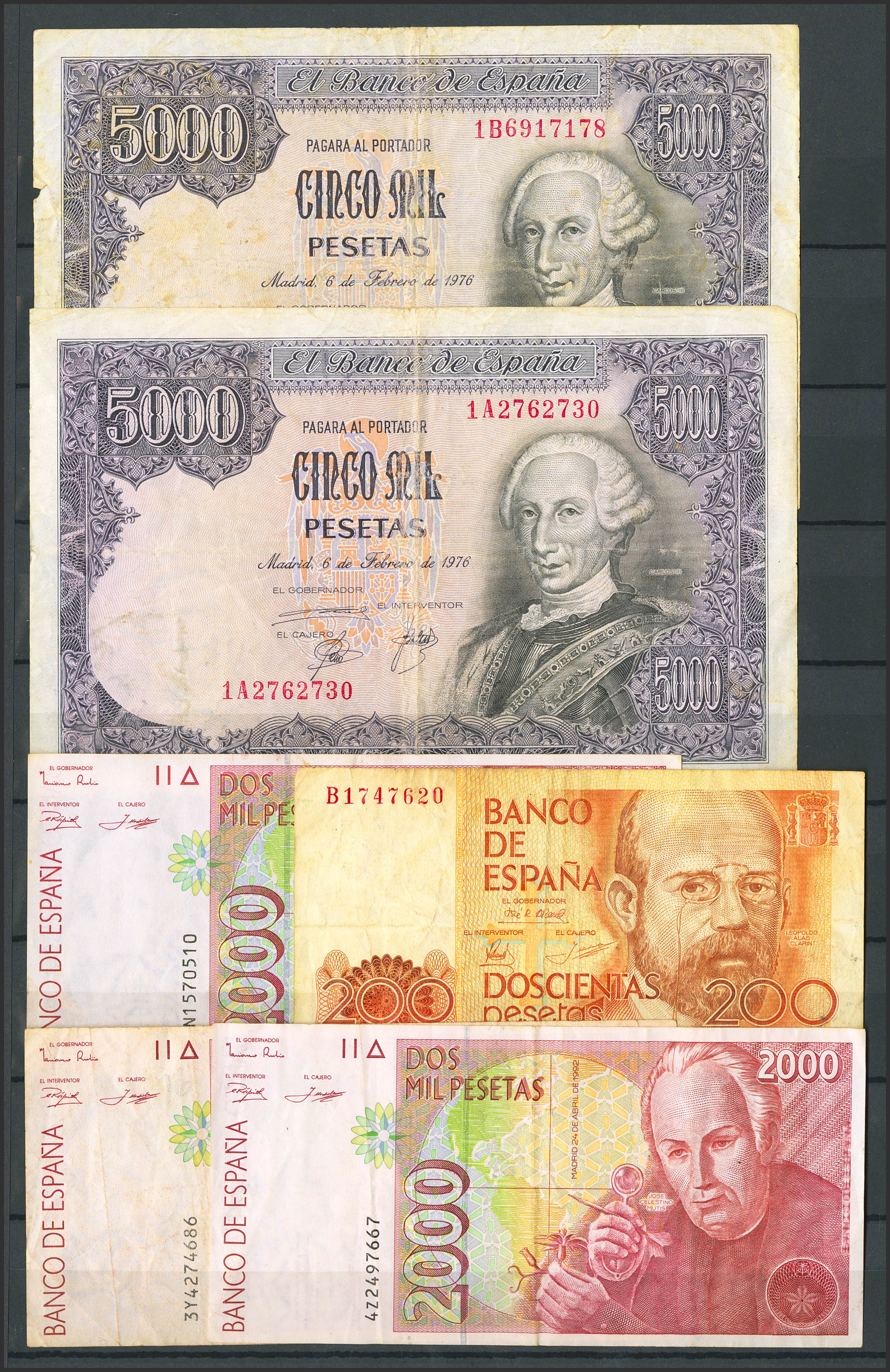 Conjunto de más de 15 billetes del Banco de España de diferentes emisiones y en diversas calidades. A EXAMINAR.