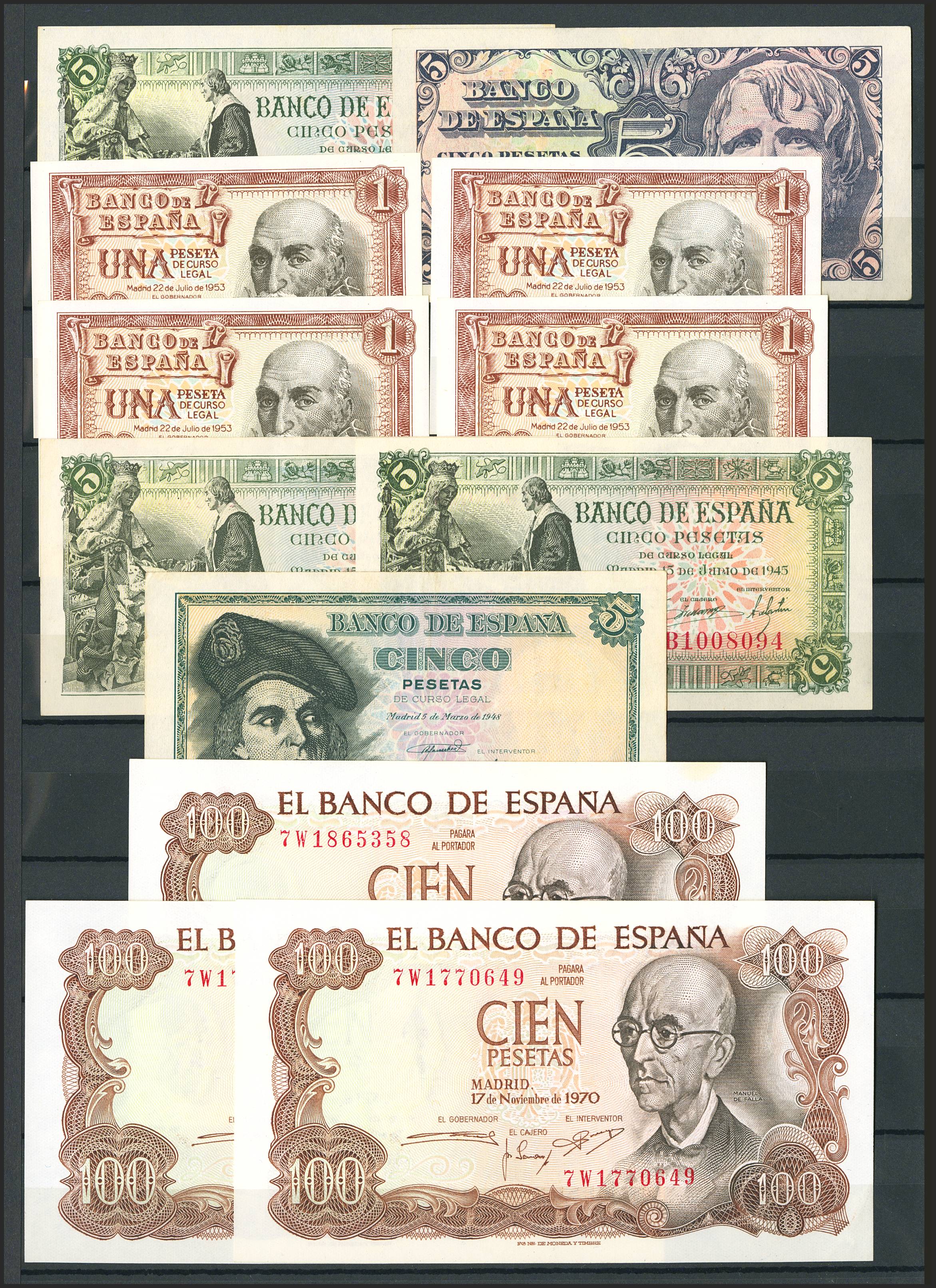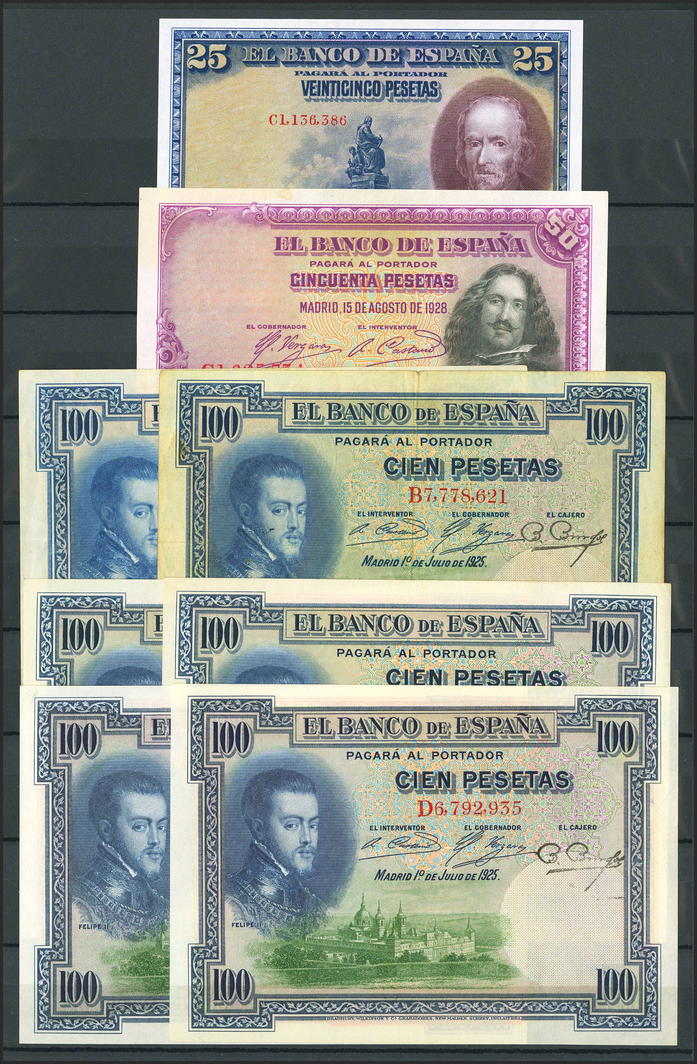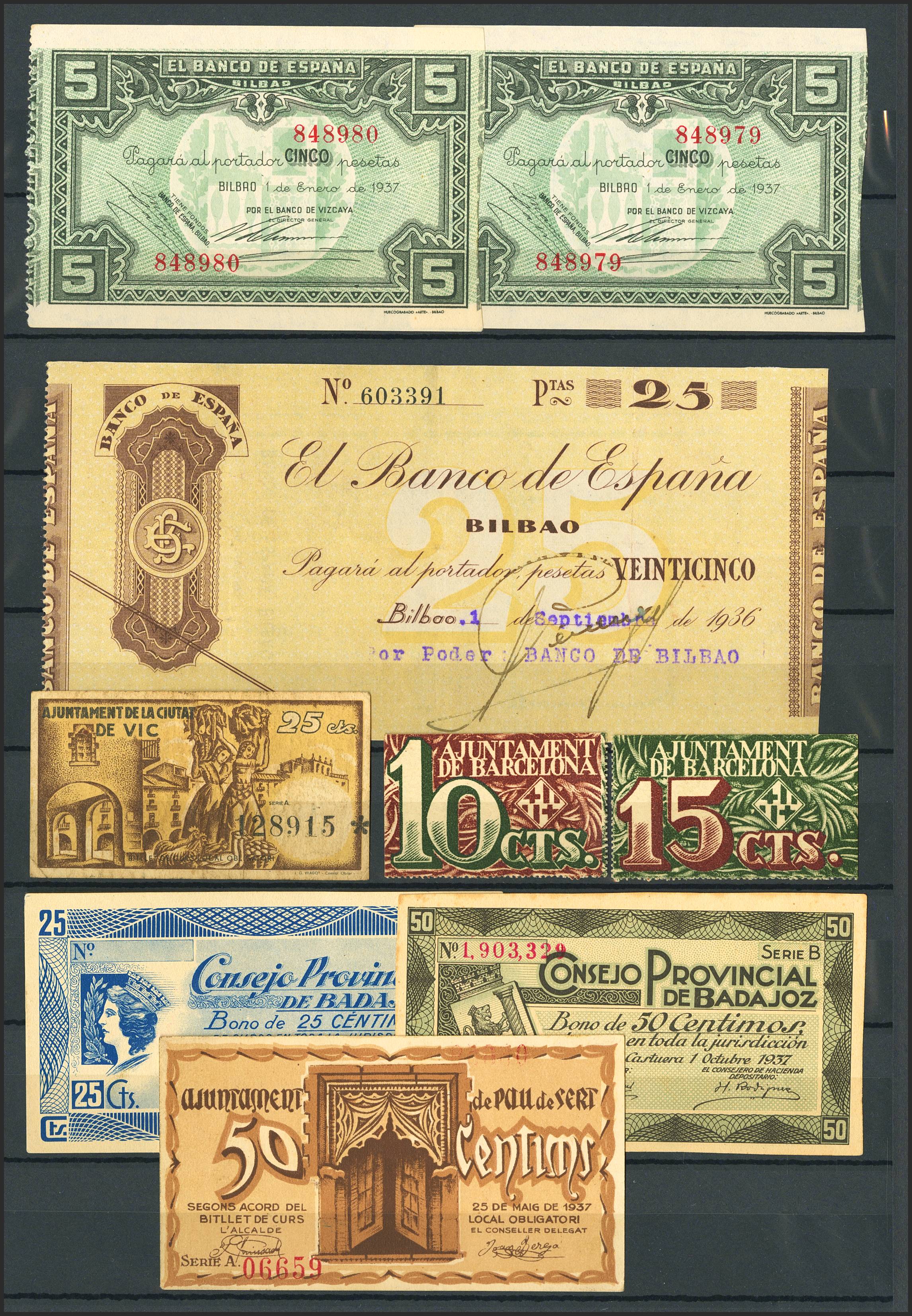 Conjunto de más de 25 billetes del Banco de España de diferentes emisiones y en diversas calidades incluyendo algunos de la Guerra Civil. A EXAMINAR