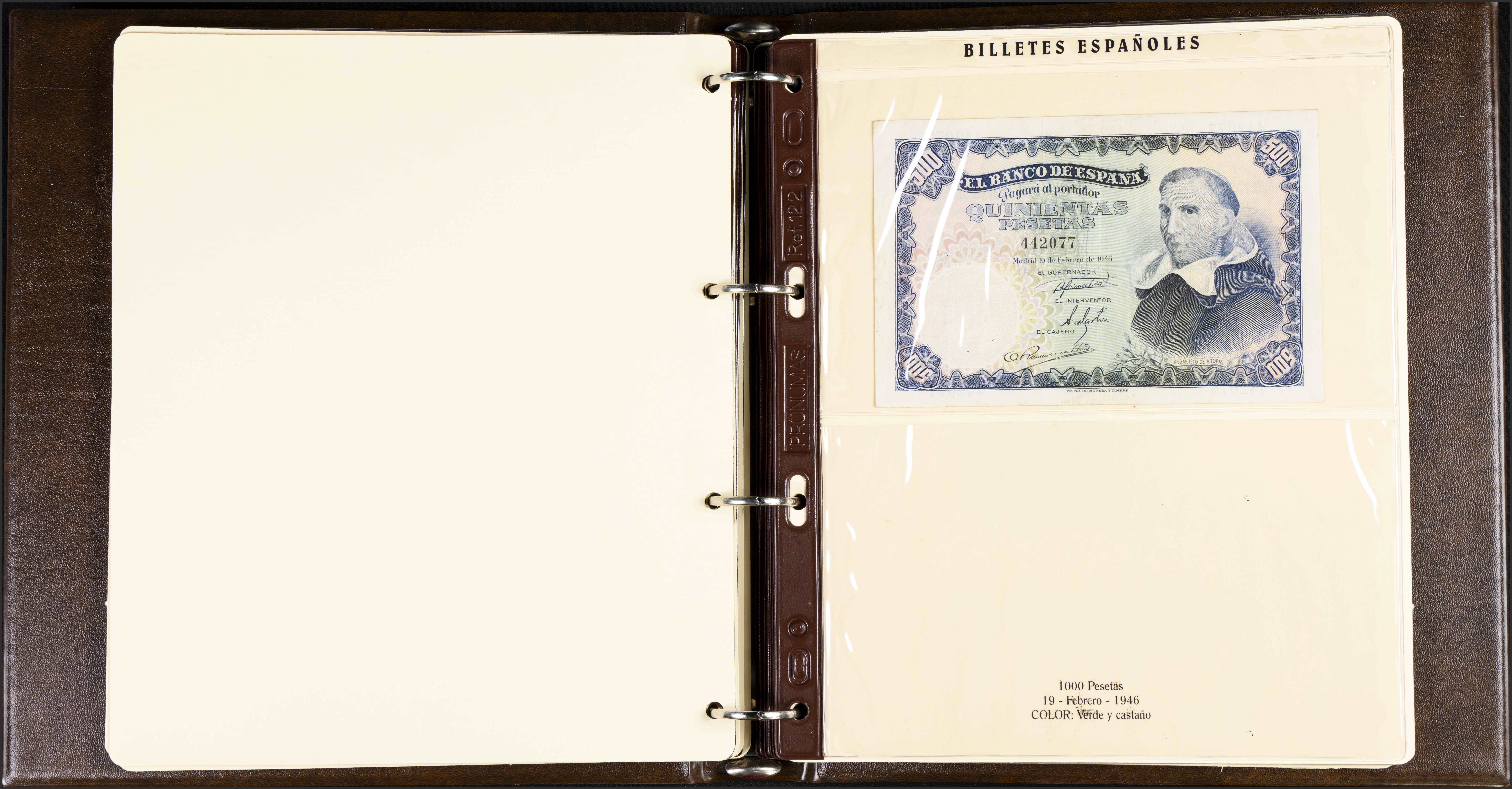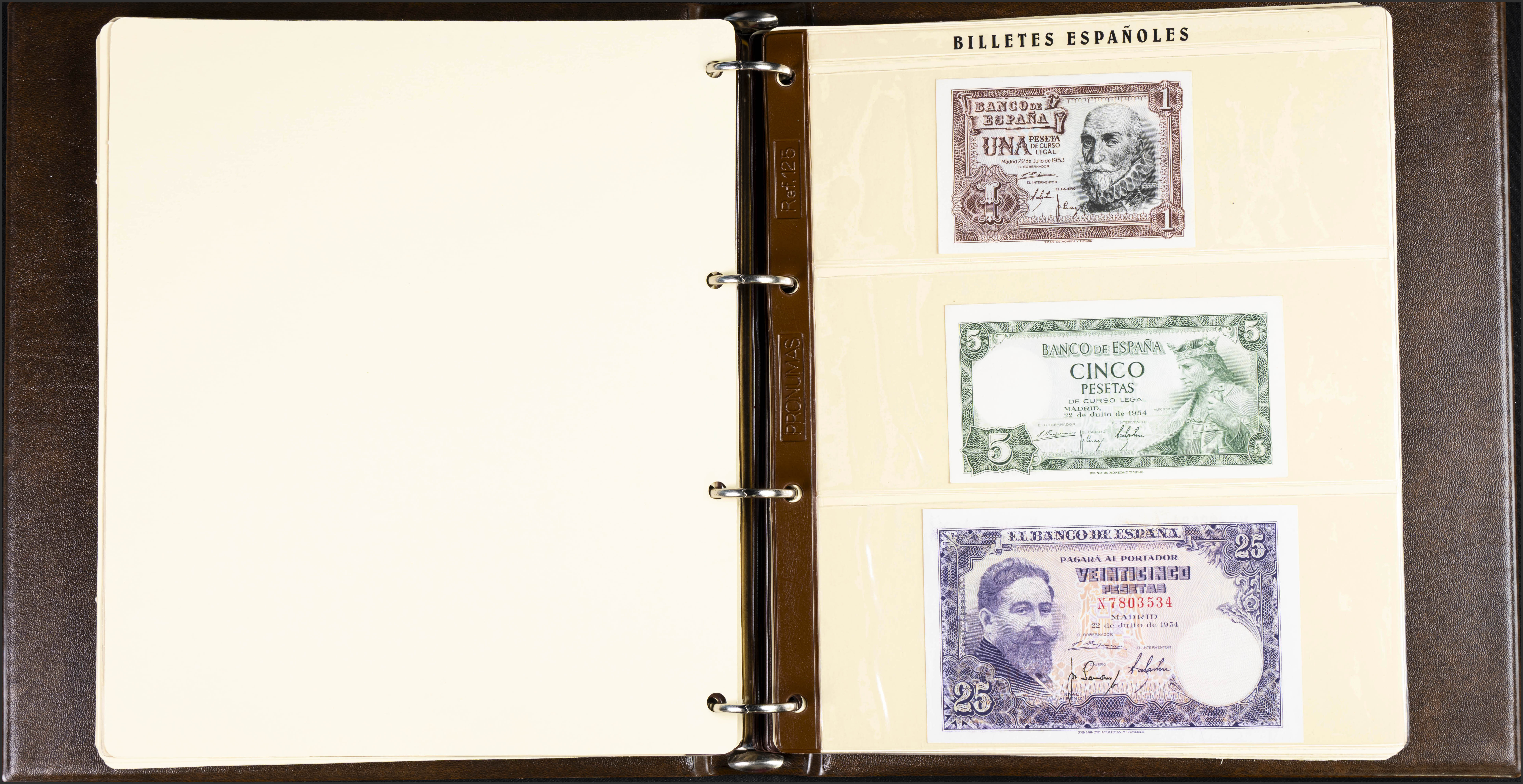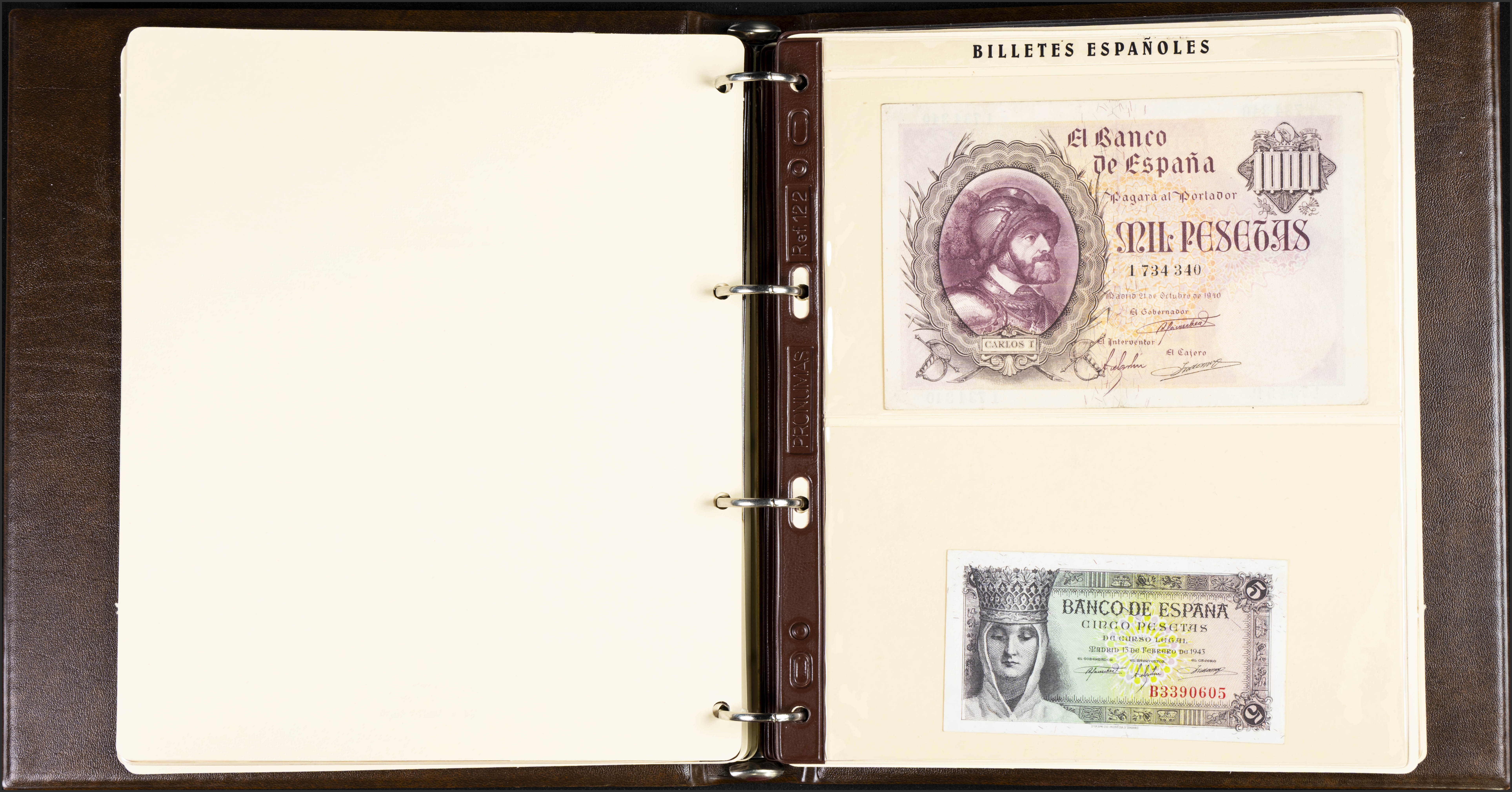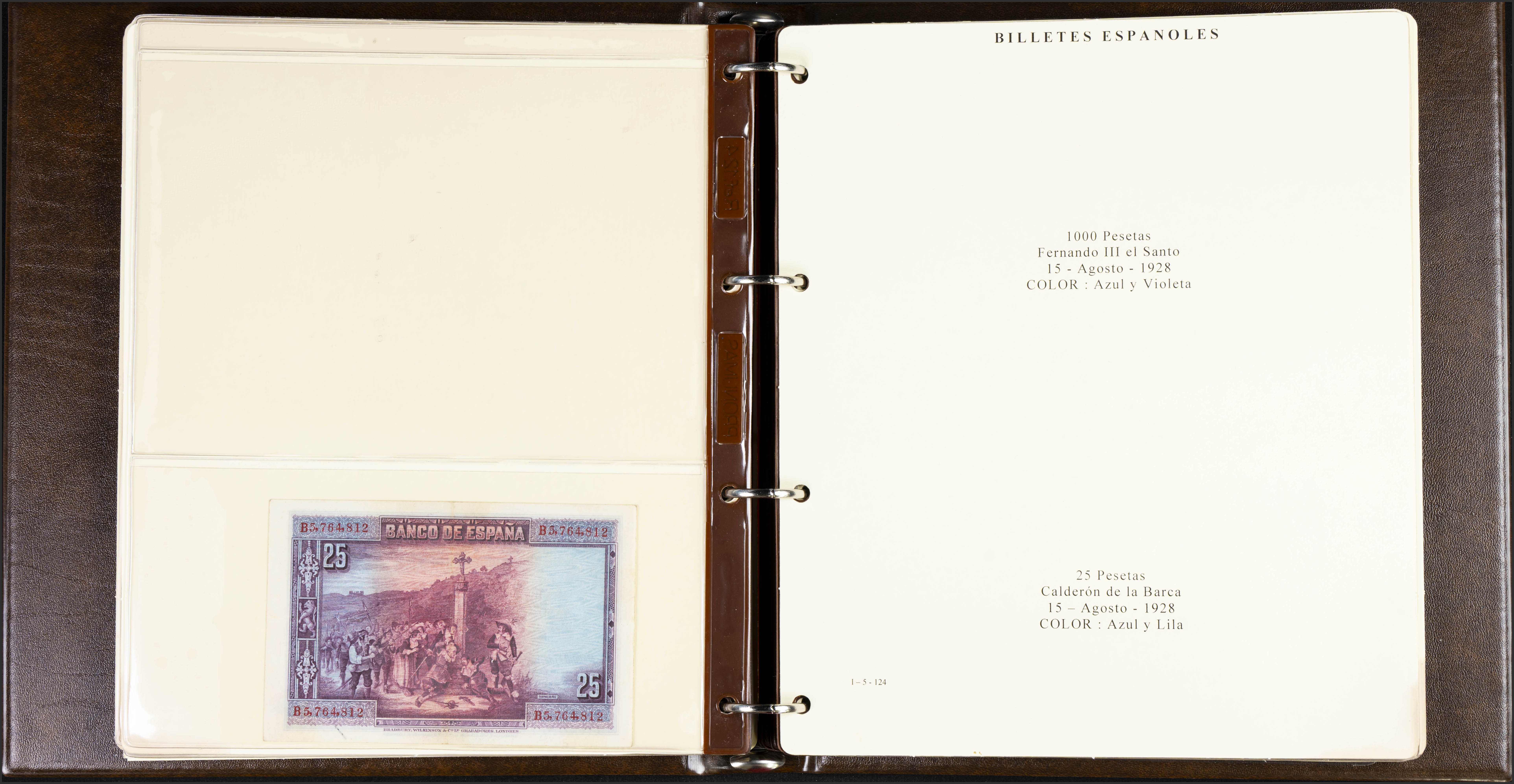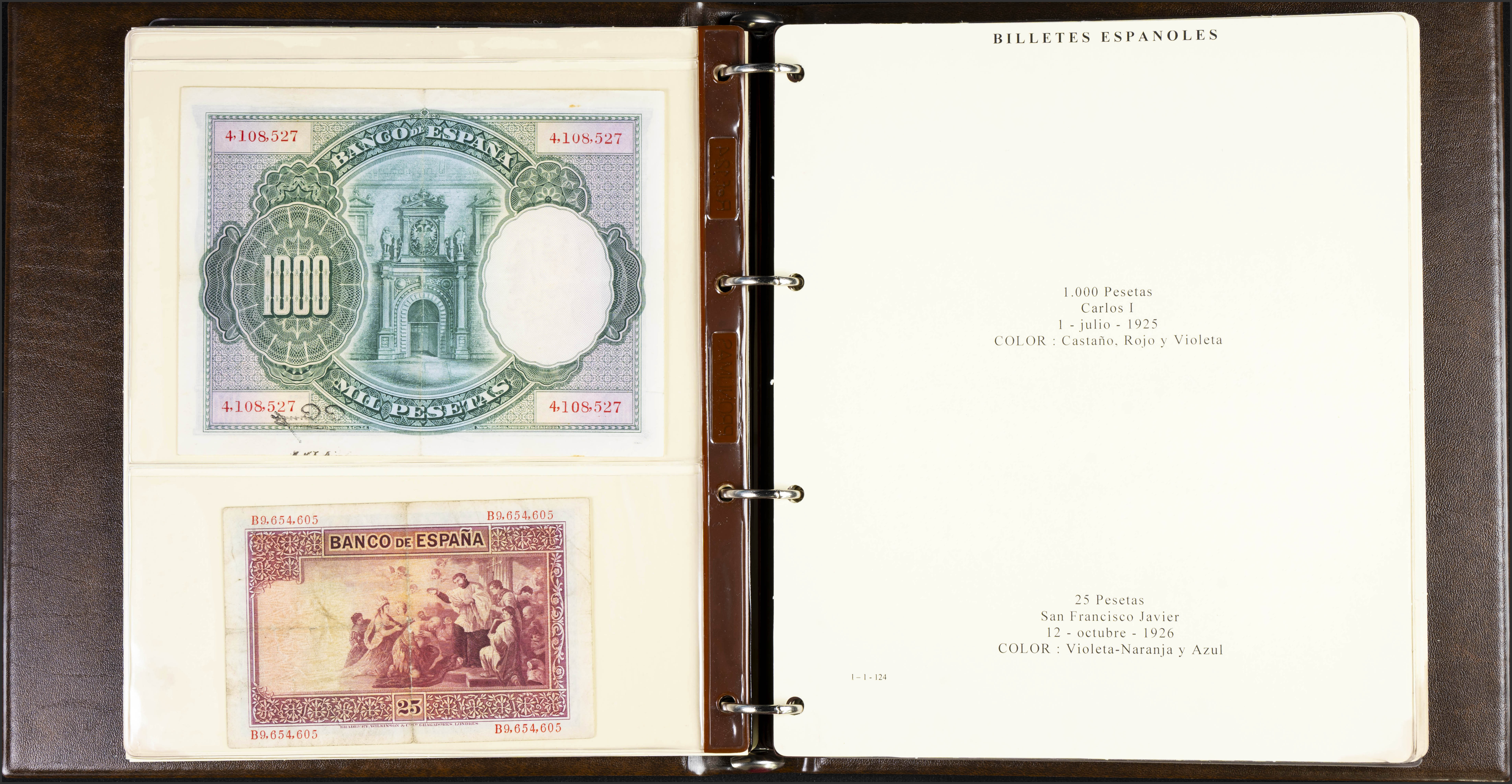Espectacular resto de colección compuesta por billetes del siglo XX denominados todos en pesetas y emitidos por el Banco de España, incluye la casi totalidad de ejemplares puestos en circulación, el conjunto llama su atención por la inclusión de billetes de gran valor y altas denominaciones, estas últimas en calidades no muy altas, pero muy solicitadas por los coleccionistas. OPORTUNIDAD DE HACERSE CON UN CONJUNTO DE GRAN ENVERGADURA TANTO PARA EL COLECCIONISTA COMO PARA REVENDER INDIVIDUALMENTE. IMPRESCINDIBLE EXAMINAR.