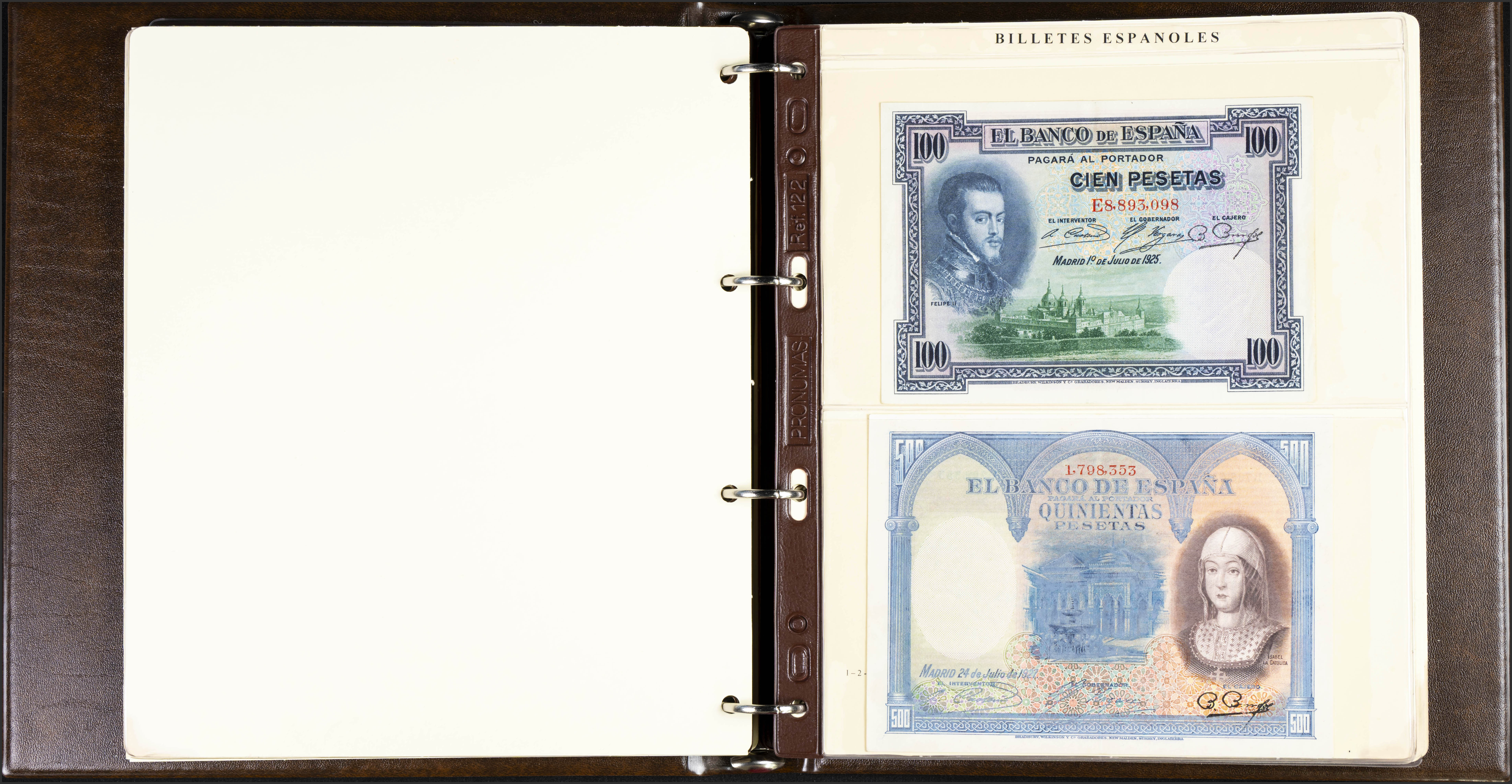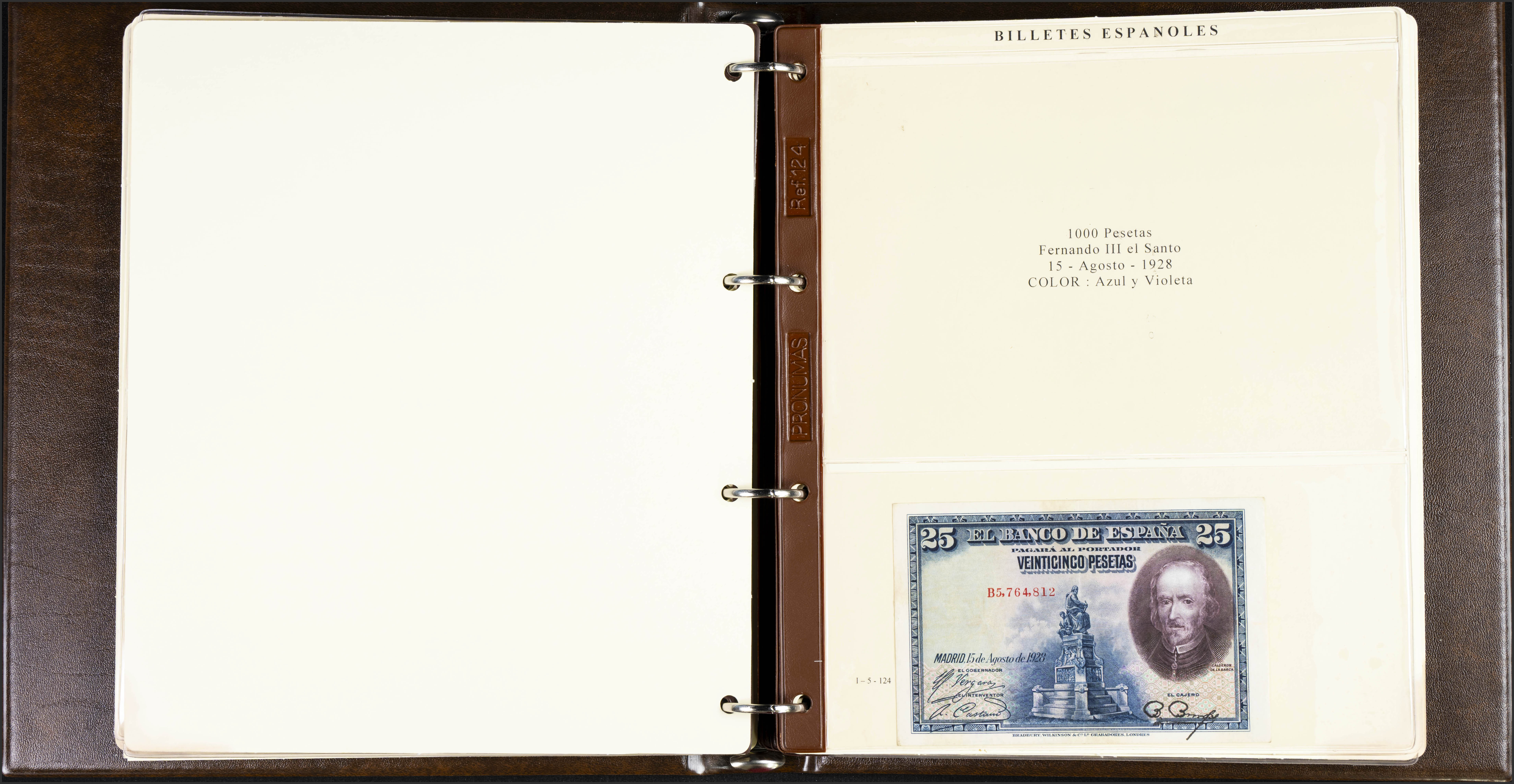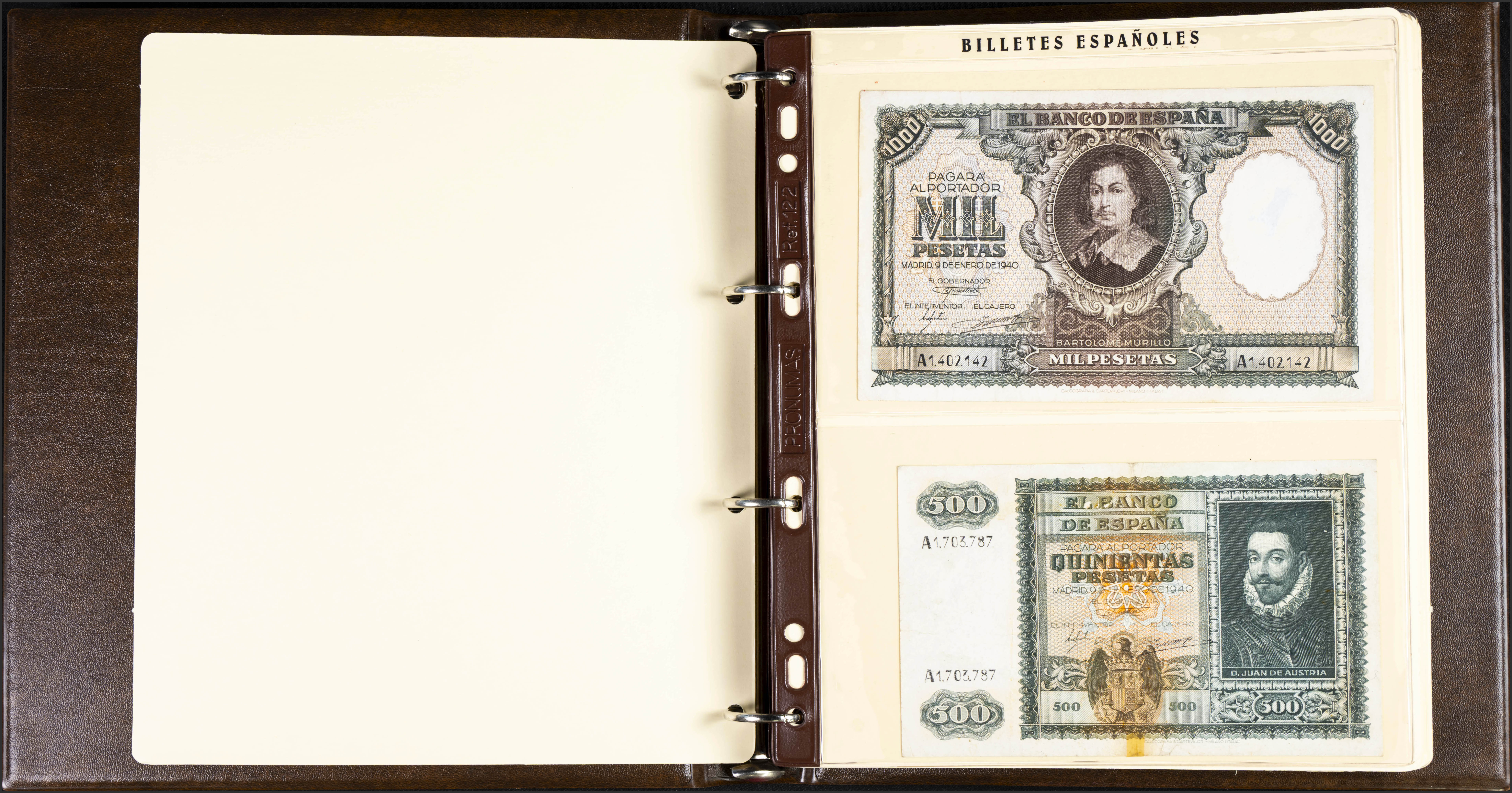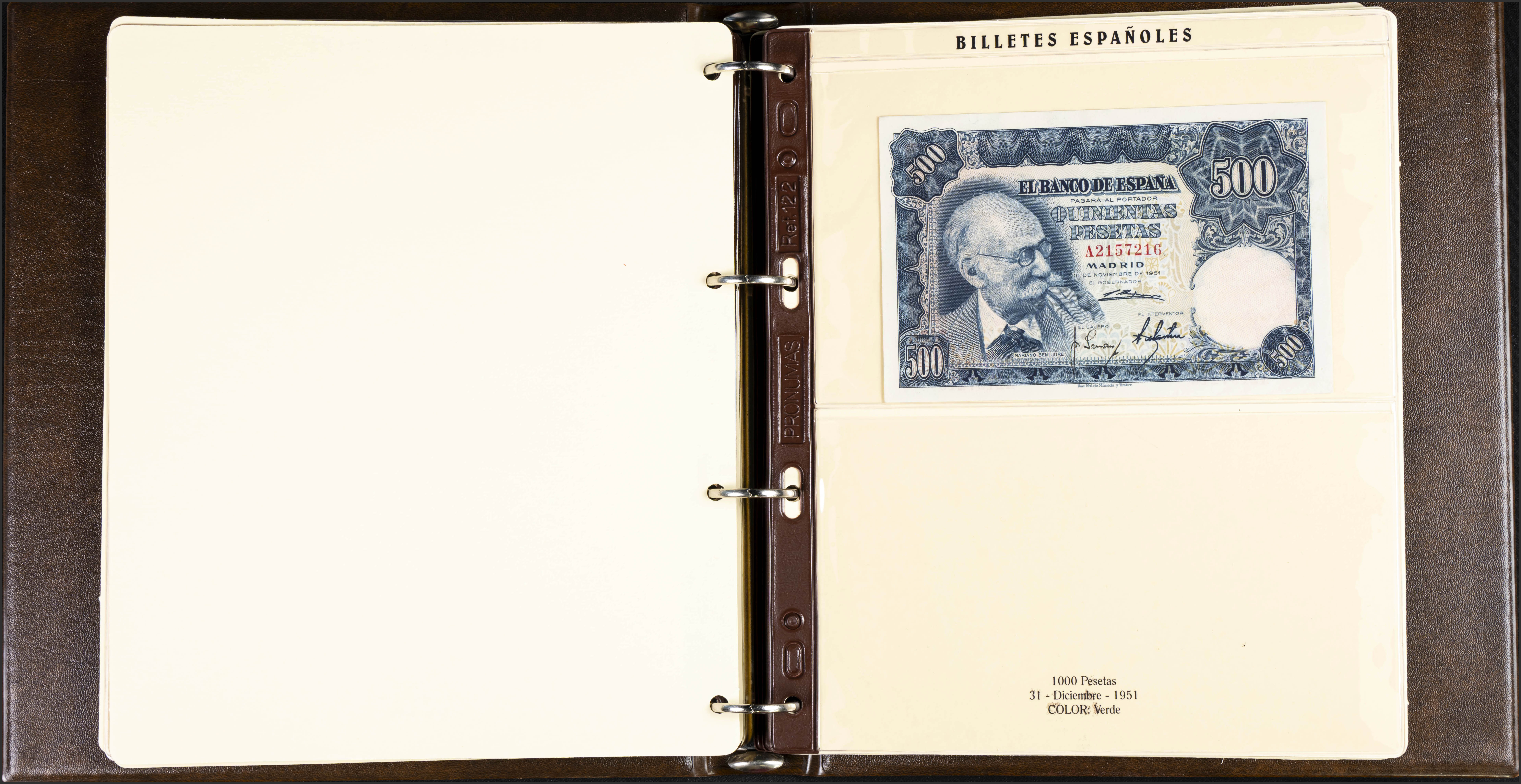 Espectacular resto de colección compuesta por billetes del siglo XX denominados todos en pesetas y emitidos por el Banco de España, incluye la casi totalidad de ejemplares puestos en circulación, el conjunto llama su atención por la inclusión de billetes de gran valor y altas denominaciones, estas últimas en calidades no muy altas, pero muy solicitadas por los coleccionistas. OPORTUNIDAD DE HACERSE CON UN CONJUNTO DE GRAN ENVERGADURA TANTO PARA EL COLECCIONISTA COMO PARA REVENDER INDIVIDUALMENTE. IMPRESCINDIBLE EXAMINAR.