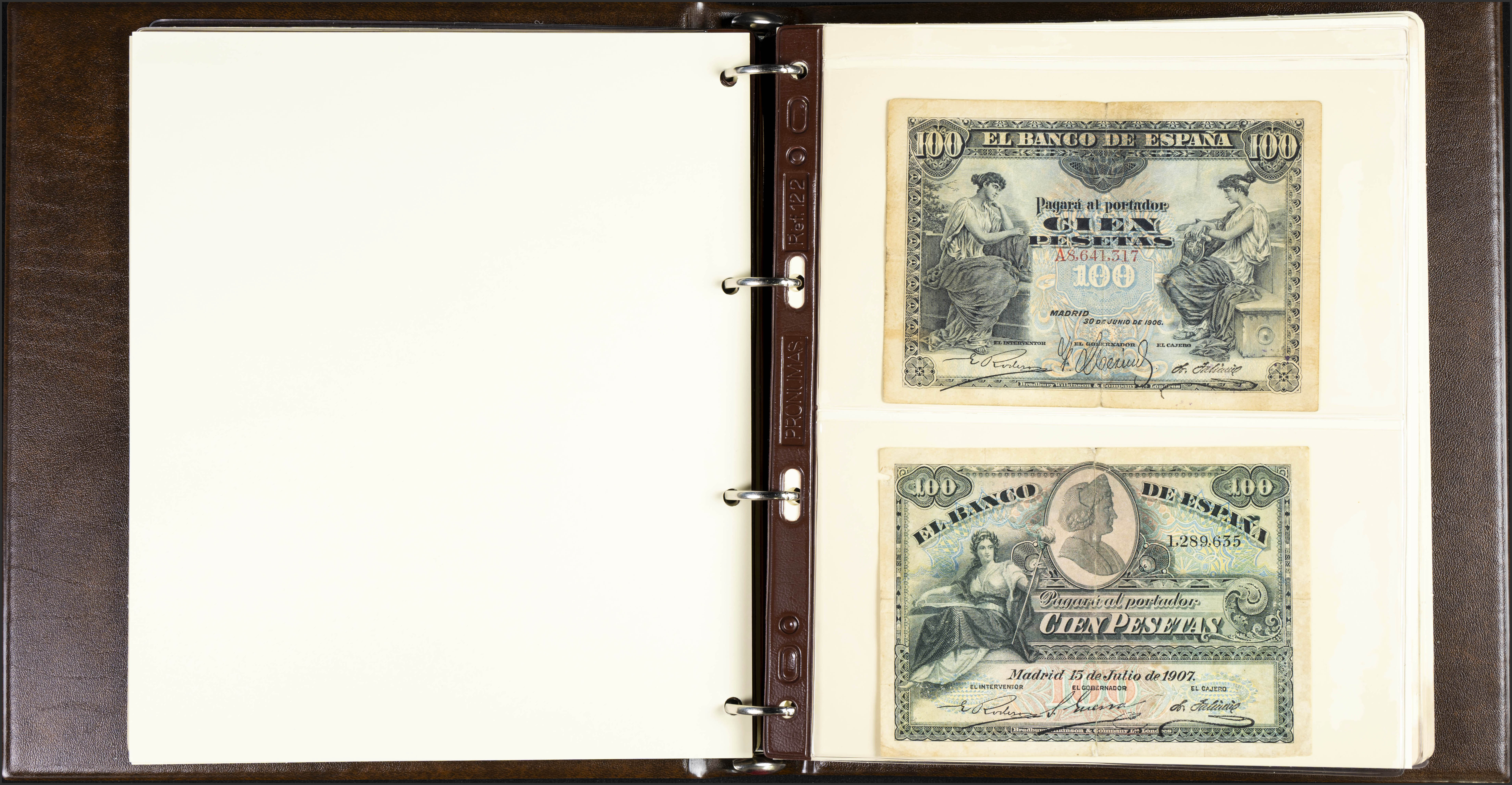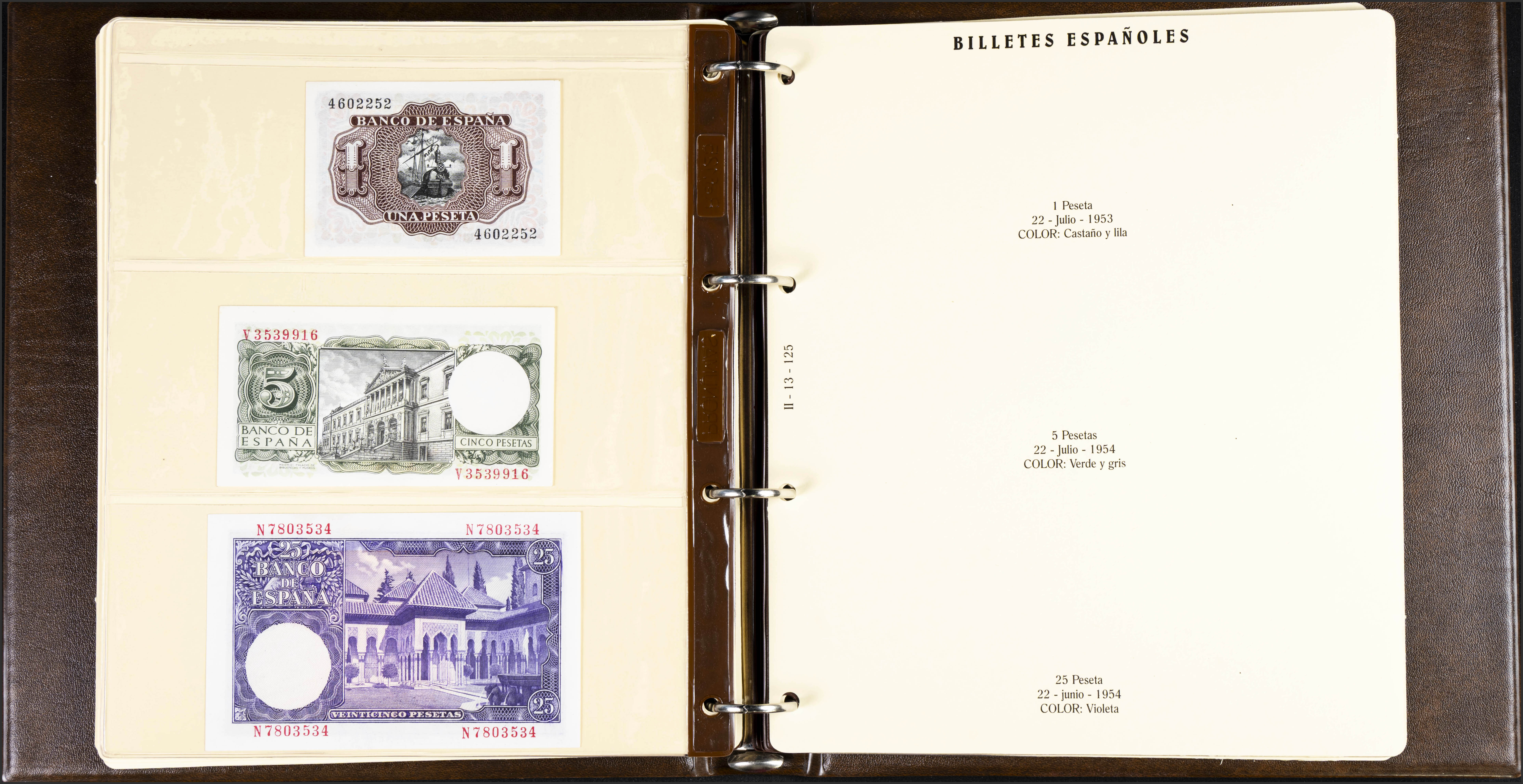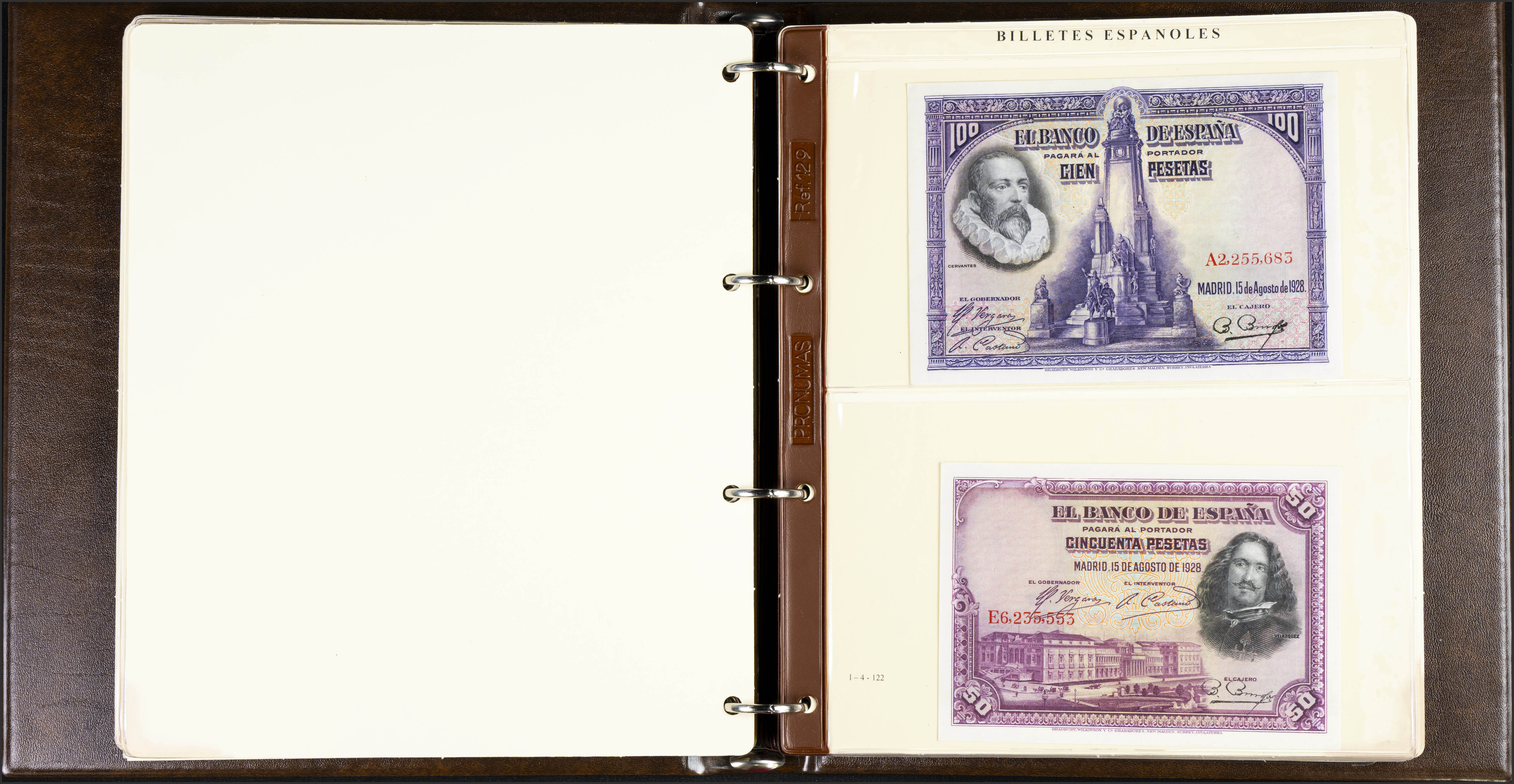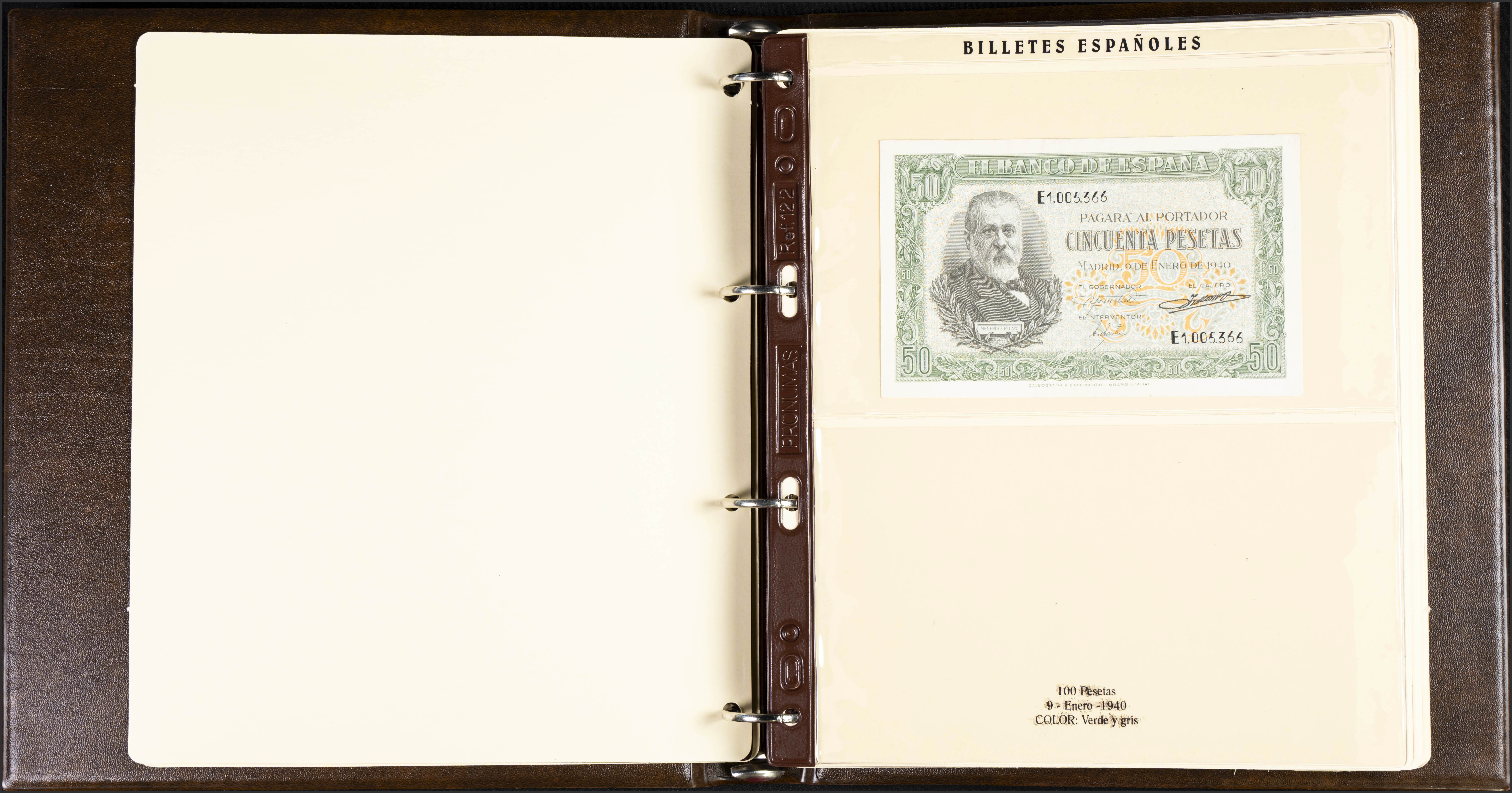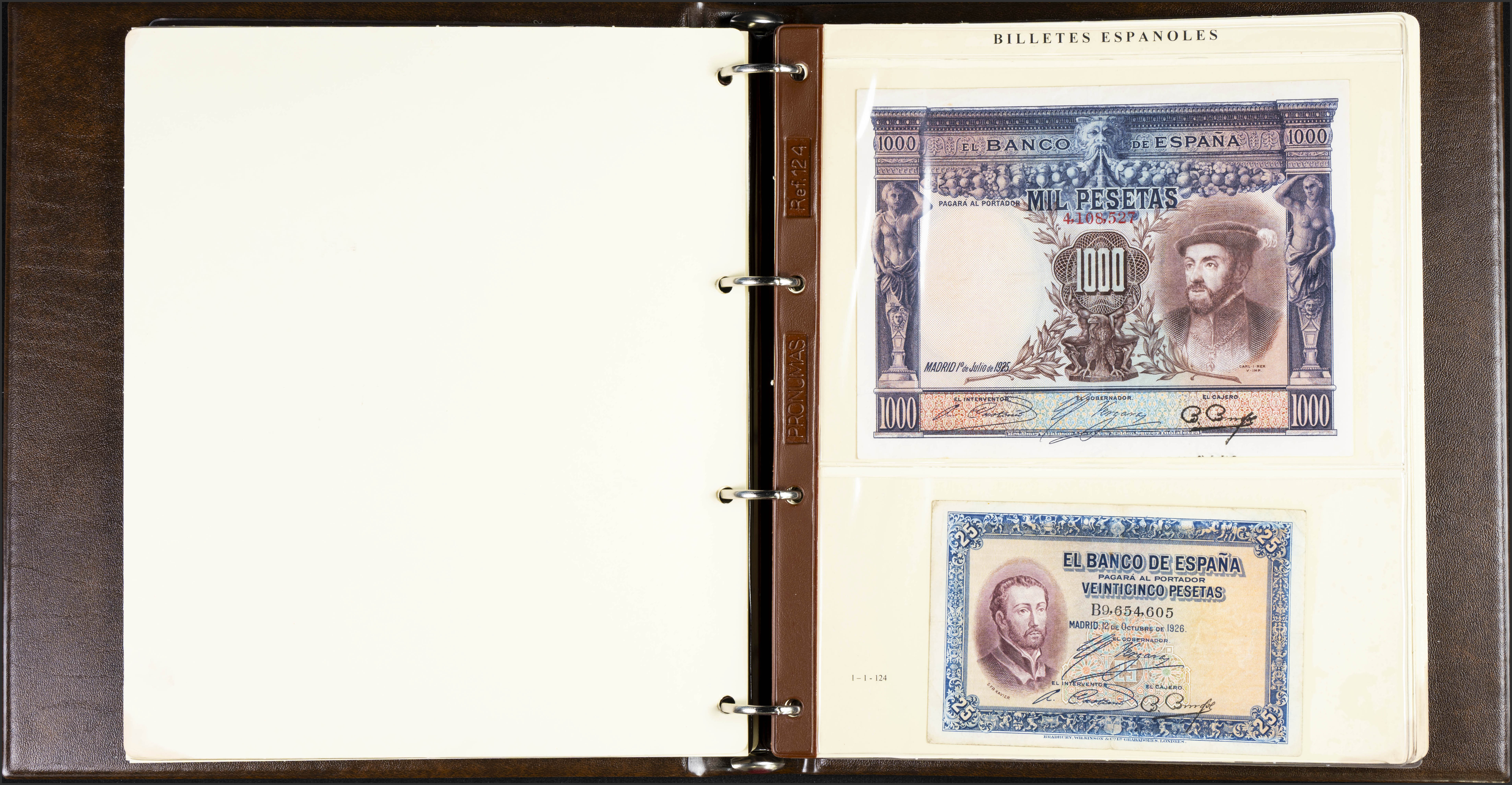 Espectacular resto de colección compuesta por billetes del siglo XX denominados todos en pesetas y emitidos por el Banco de España, incluye la casi totalidad de ejemplares puestos en circulación, el conjunto llama su atención por la inclusión de billetes de gran valor y altas denominaciones, estas últimas en calidades no muy altas, pero muy solicitadas por los coleccionistas. OPORTUNIDAD DE HACERSE CON UN CONJUNTO DE GRAN ENVERGADURA TANTO PARA EL COLECCIONISTA COMO PARA REVENDER INDIVIDUALMENTE. IMPRESCINDIBLE EXAMINAR.