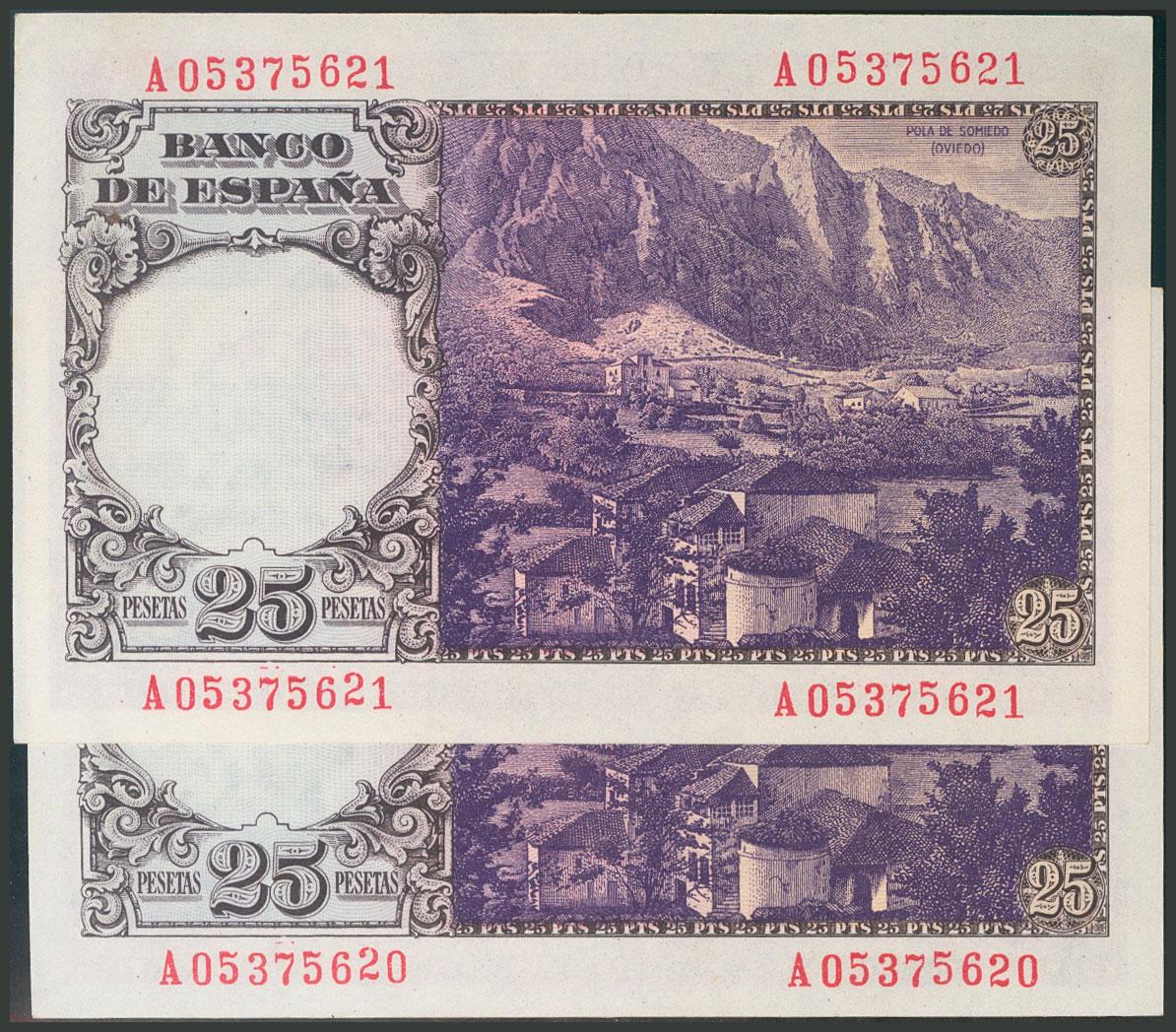 25 Pesetas. 19 de Febrero de 1946. Pareja correlativa. Serie A. (Edifil 2017: 450a). Apresto original. SC/SC-.