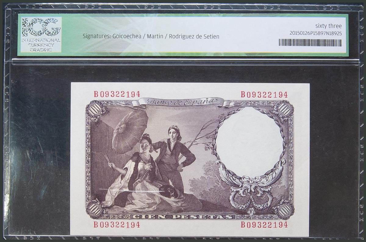 100 Pesetas. 19 de Febrero de 1946. Serie B. (Edifil 2017: 451b). Encapsulado ICG63. SC.