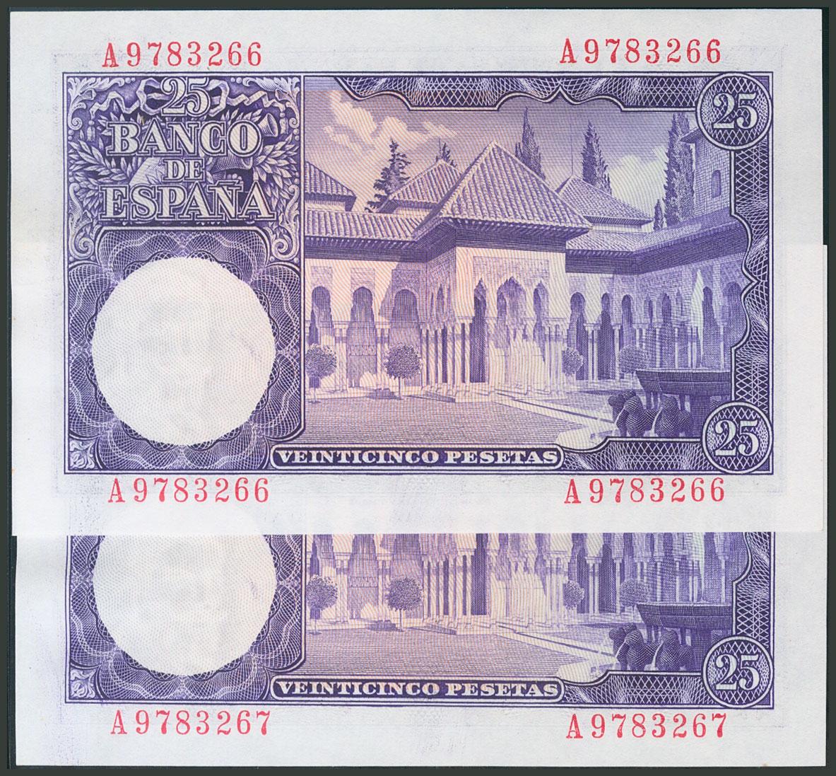 25 Pesetas. 22 de Julio de 1954. Pareja correlativa. Serie A. (EDifil 2017: 467a). Apresto original. SC-.