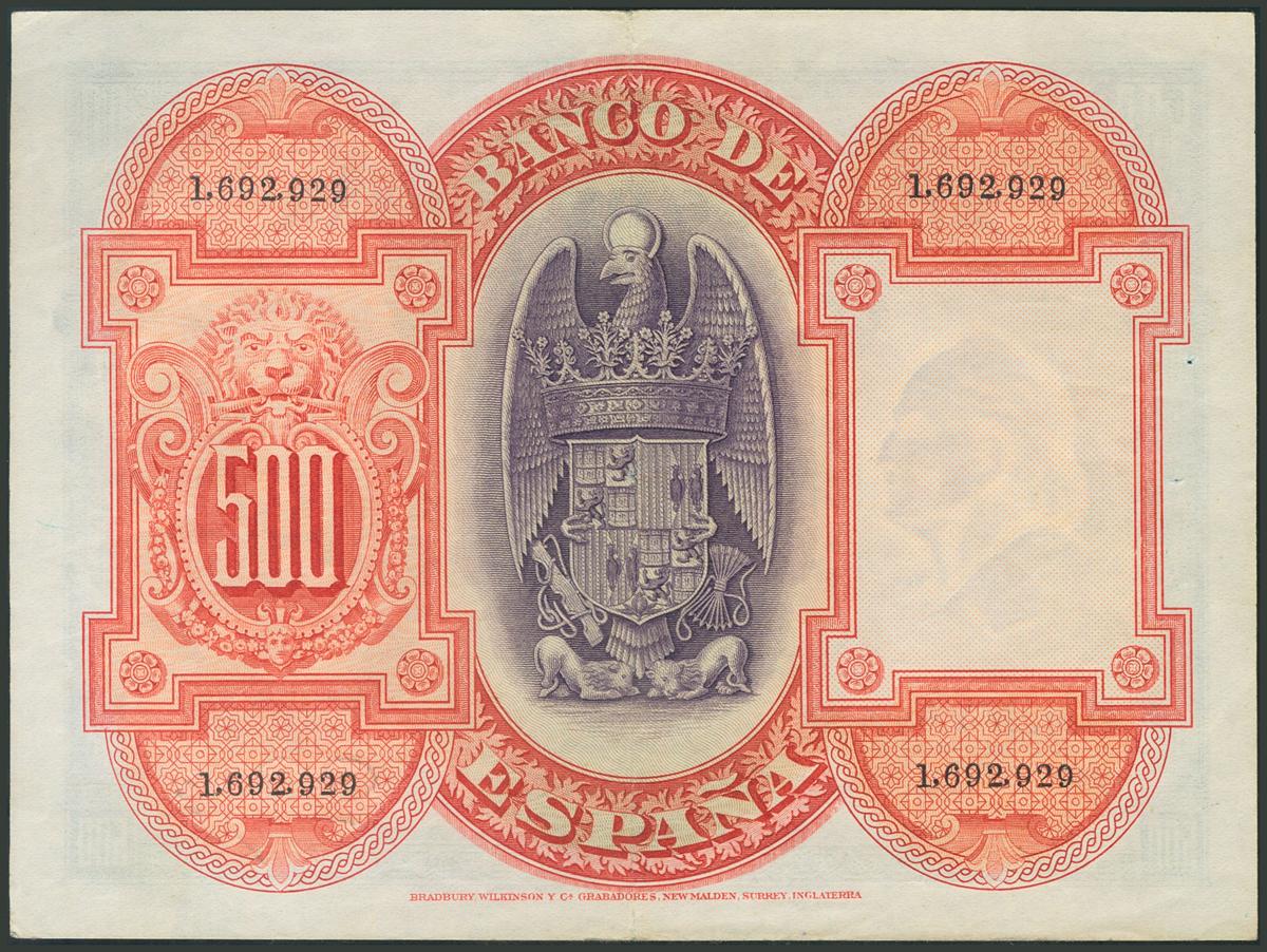 500 Pesetas. 24 de Julio de 1927. Sin serie. (Edifil 2017: 352). Conserva algo de apresto. EBC-.