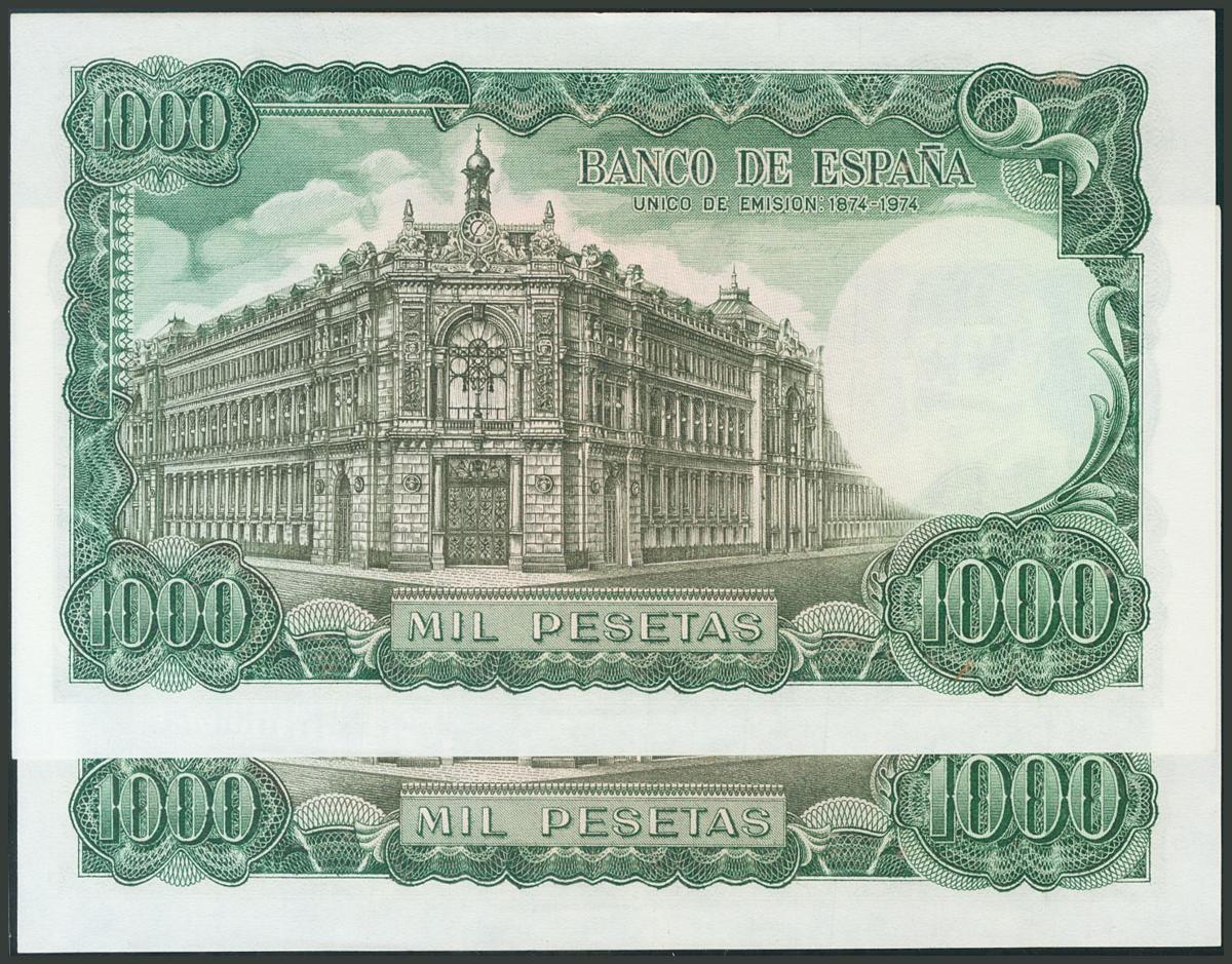 1000 Pesetas. 17 de Abril de 1971. Pareja correlativa. Sin serie. (Edifil 2017: 474). Apresto original. SC-.