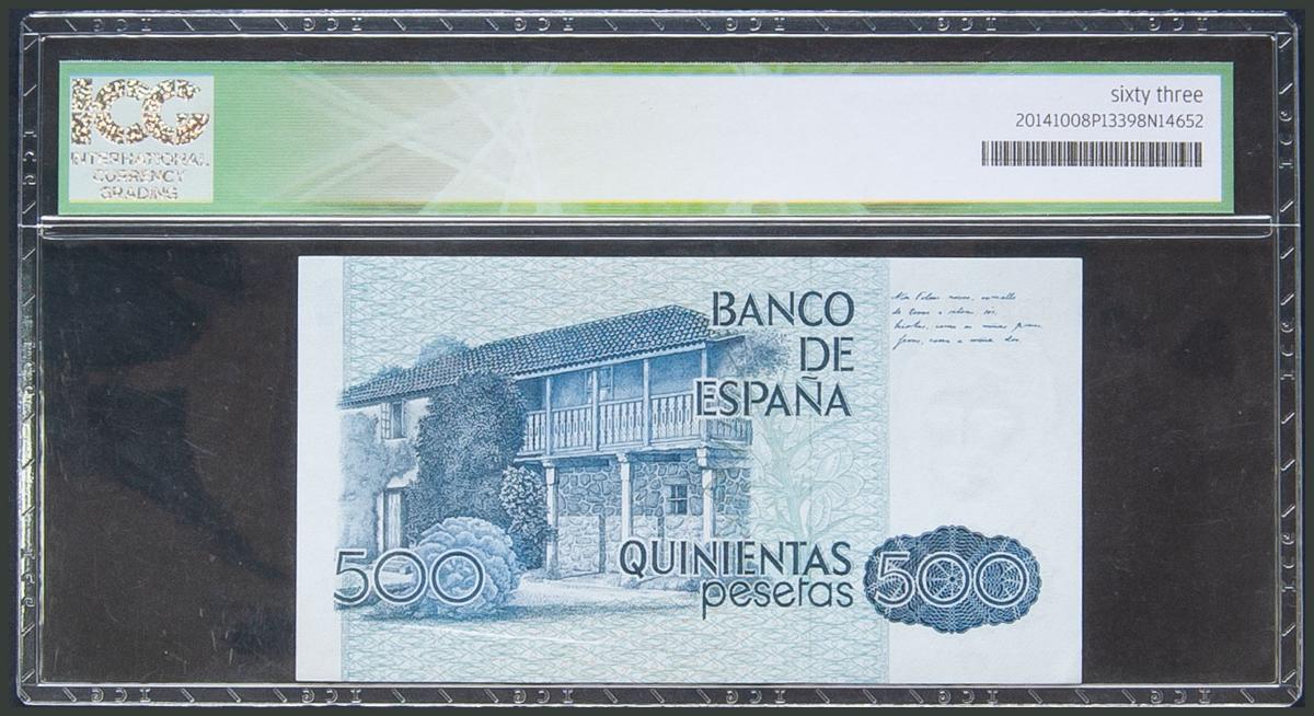500 Pesetas. 23 de Octubre de 1976. (Edifil 2017: 476a). SC. Encapsulado ICG63.
