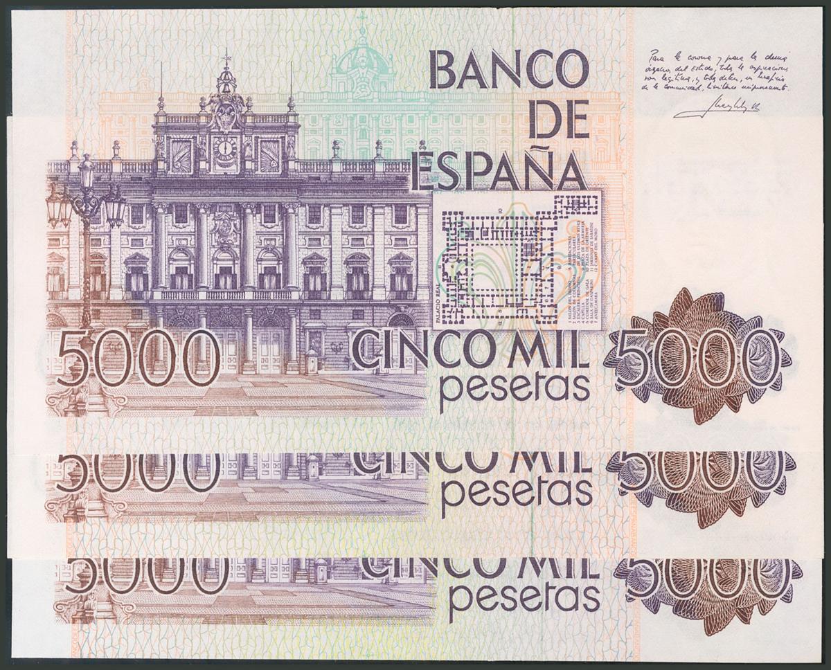 5000 Pesetas. 23 de Diciembre de 1979. Trío correlativo. Serie T. (Edifil 2017: 478a). SC-.