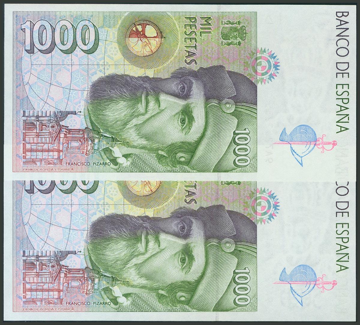 1000 Pesetas. 12 de Octubre de 1992. Pareja correlativa. Serie especial 9A. (Edifil 2017: 483c). Apresto original. SC.