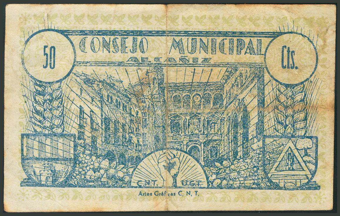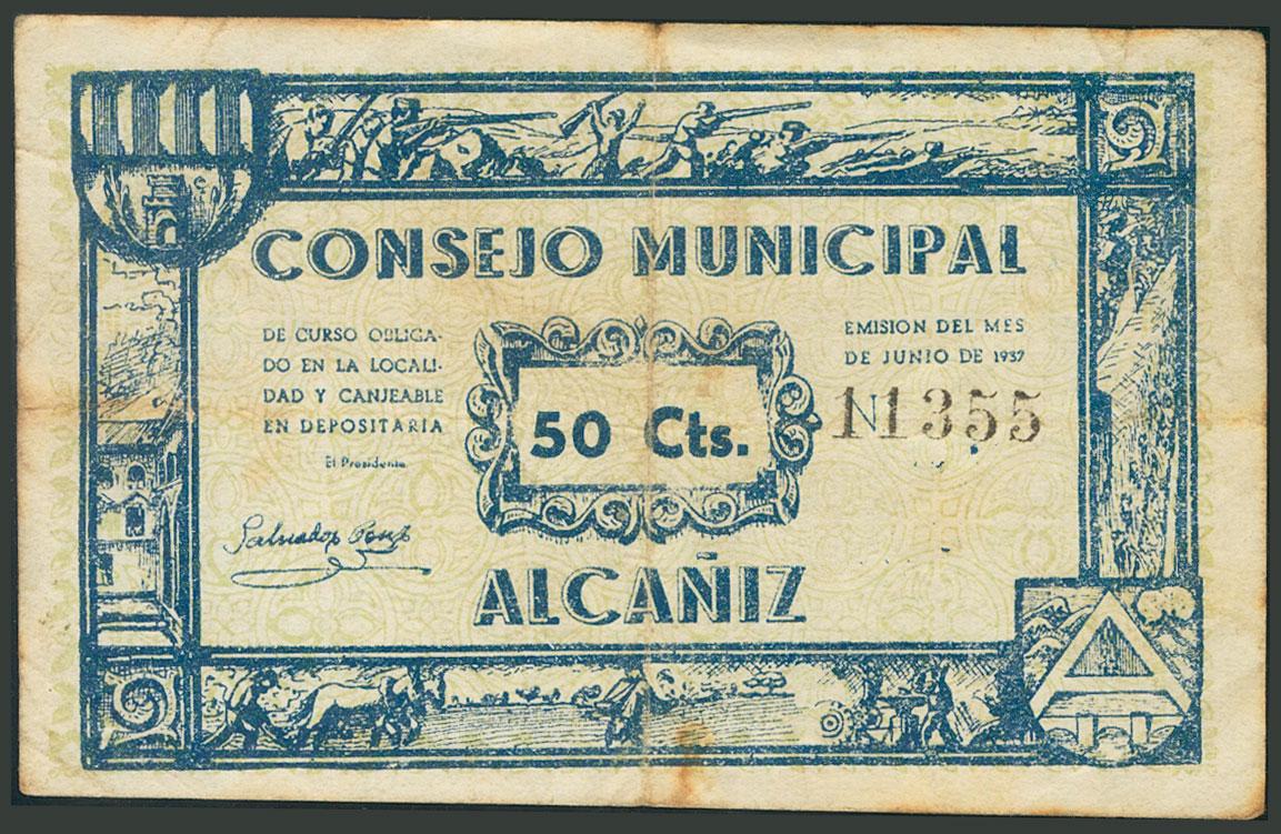 ALCAÑIZ (TERUEL). 50 Céntimos. Junio 1937. (González: 297). BC.
