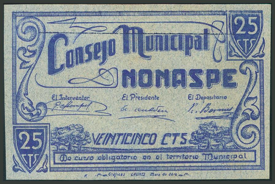NONASPE (ZARAGOZA). 25 Céntimos. (1938ca). (González: 3862). EBC.