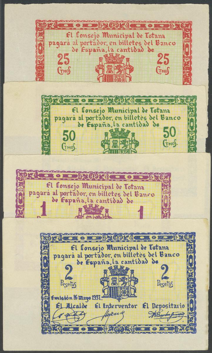 TOTANA (MURCIA). 25 Céntimos, 50 Céntimos, 1 Peseta y 2 Pesetas. 17 de Mayo de 1937. (González: 5159/62). Muy posiblemente se traten de fantasías, aunque conocemos otra de peor calidad. A Examinar.