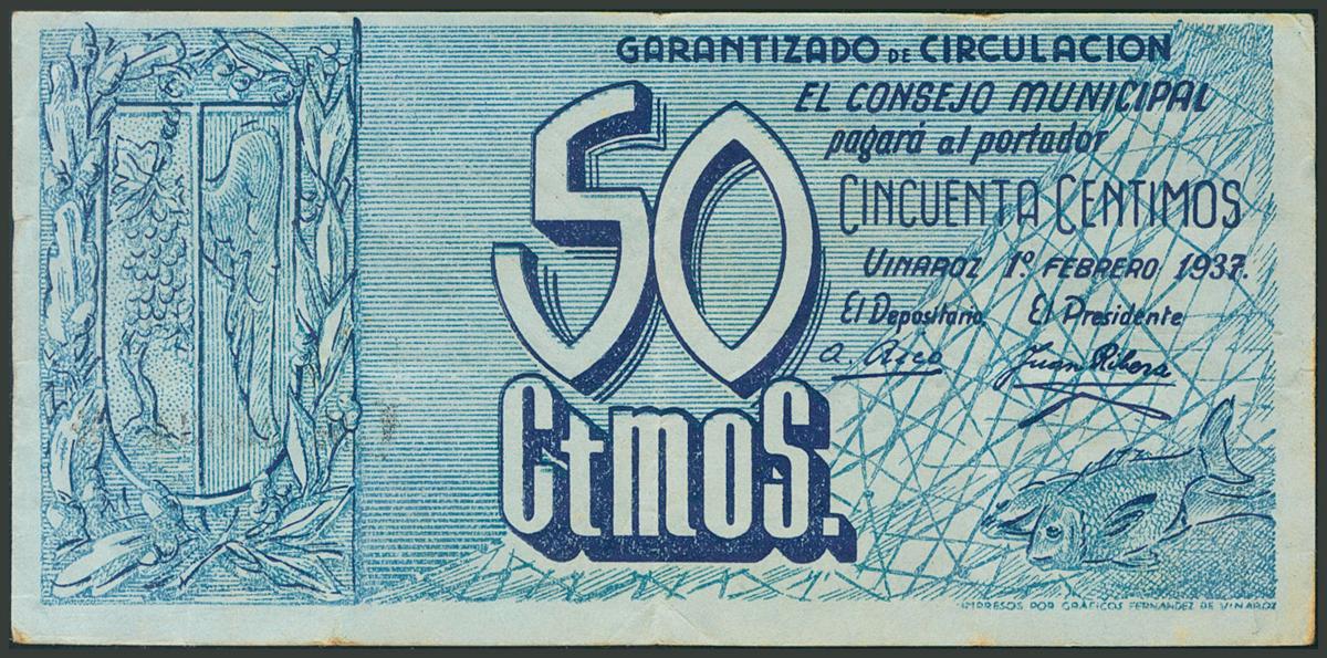 VINAROZ (CASTELLON). 50 céntimos. 1 de Febrero de 1937. (González: 5774). BC.