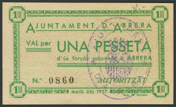 ABRERA (BARCELONA). 1 Peseta. Mayo 1937. (González: 6006). EBC+.