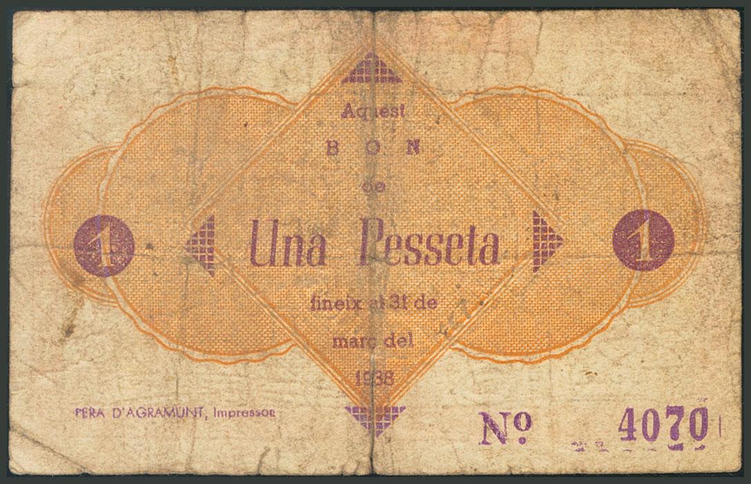 AGRAMUNT (LERIDA). 1 Peseta. Marzo de 1937. (González: 6013). RC.