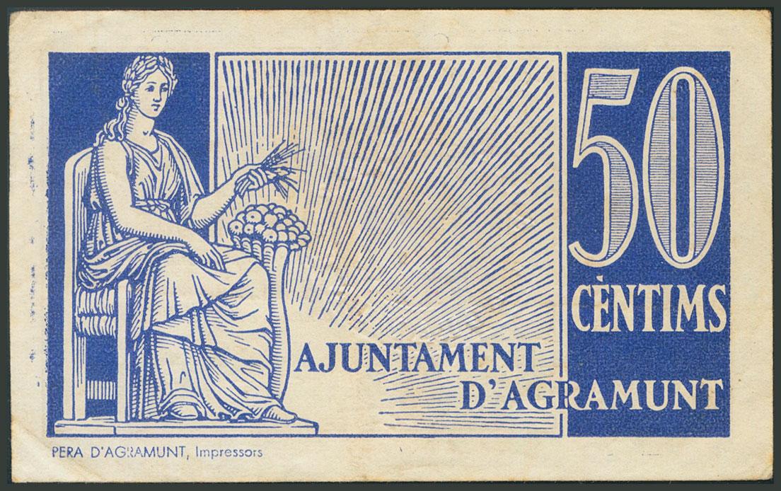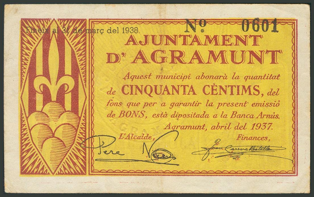 AGRAMUNT (LERIDA). 50 Céntimos. Abril 1937. (González: 6014). MBC.