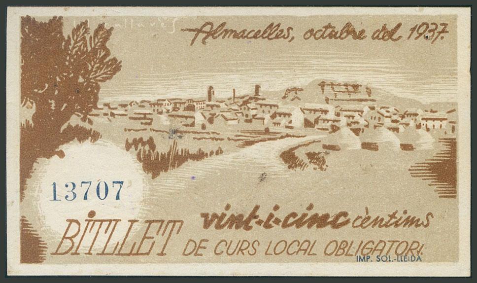 ALMACELLES (LERIDA). 25 Céntimos. Octubre 1937. (González: 6207). EBC.