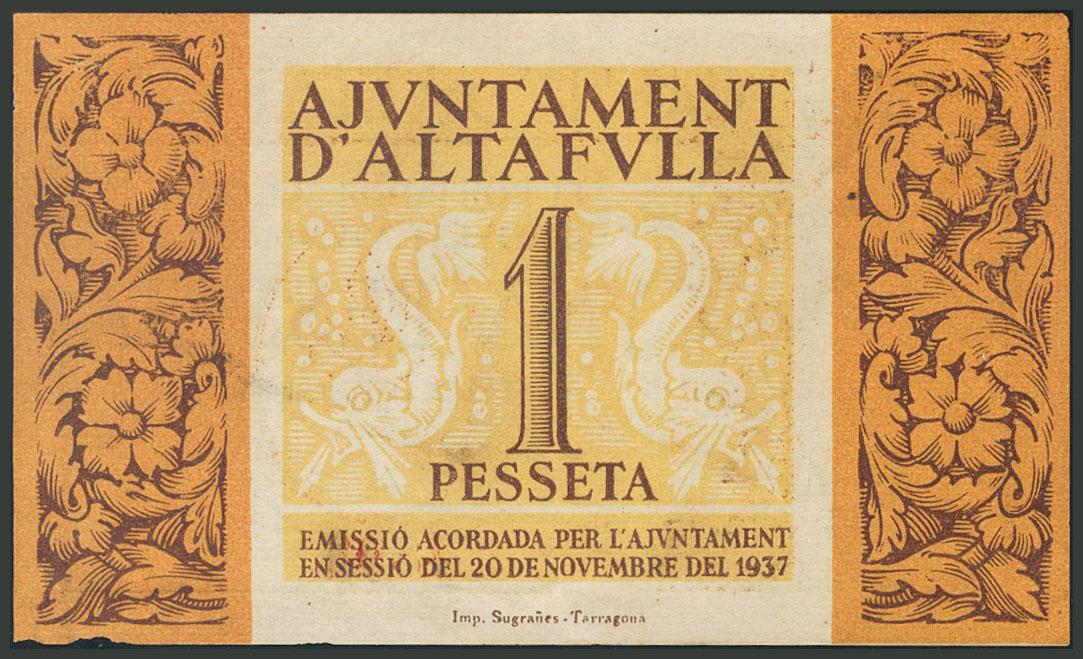 ALTAFULLA (TARRAGONA). 1 Peseta. 20 de Noviembre de 1937. (González: 6242). MBC.