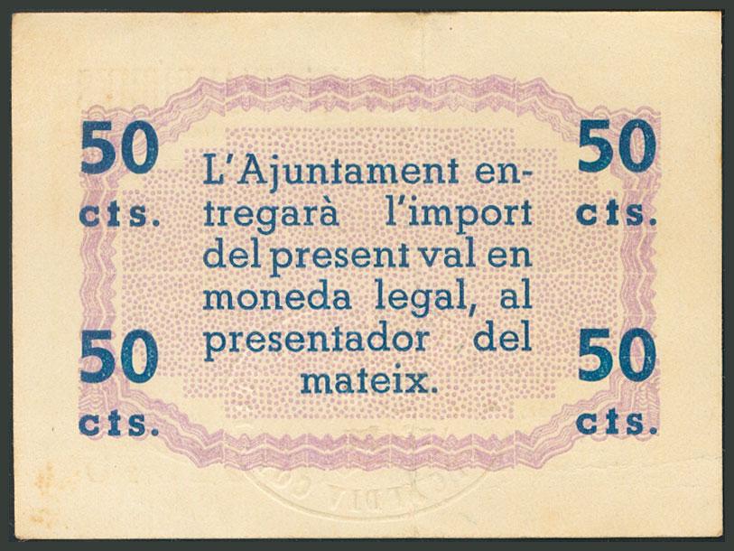 ARBUCIES (GERONA). 50 Céntimos. 1 de Mayo de 1937. Serie B. (González: 6322). EBC.