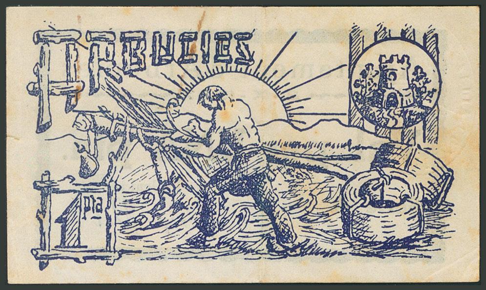 ARBUCIES (GERONA). 1 Peseta. 1 de Mayo de 1937. Serie A. (González: 6328). BC.