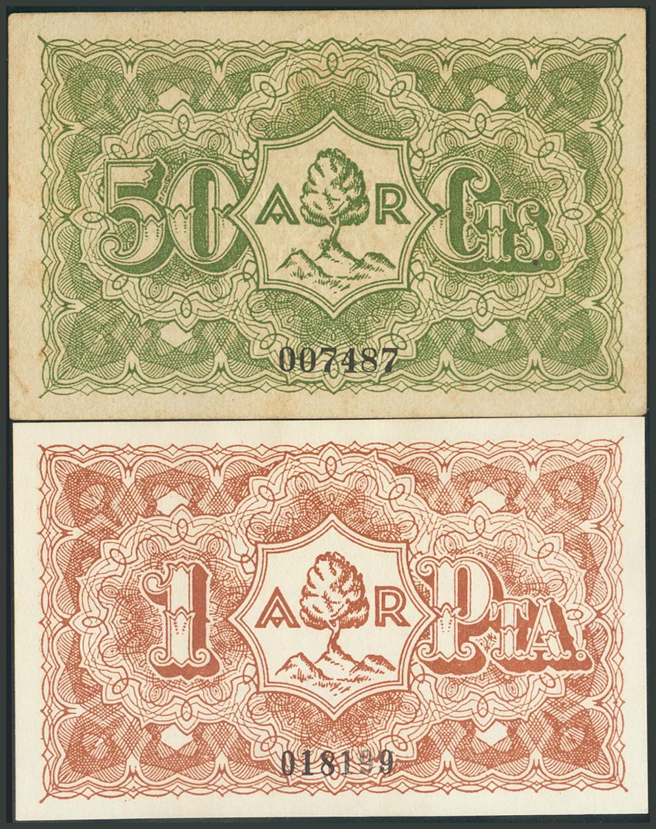 ARENYS DE MUNT (BARCELONA). 50 Céntimos y 1 Peseta. 5 de Abril de 1937. (González: 6370/71). MBC/SC.