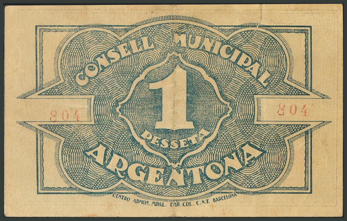 ARGENTONA (BARCELONA). 1 Peseta. 26 de Marzo de 1937. (González: 6389). MBC.